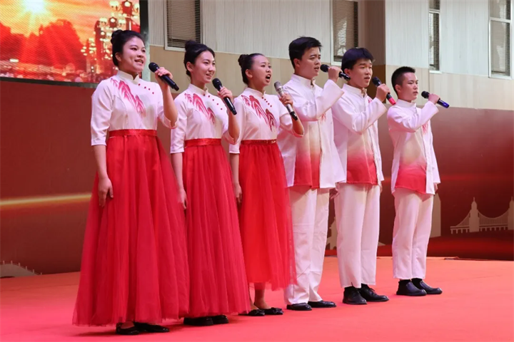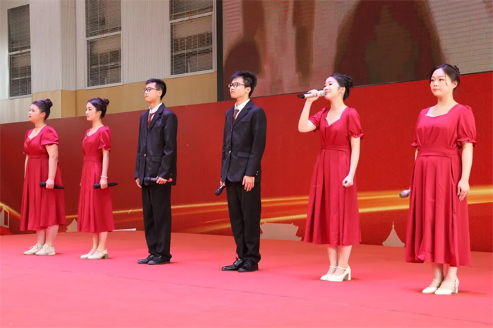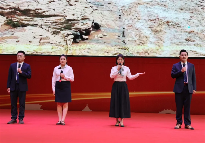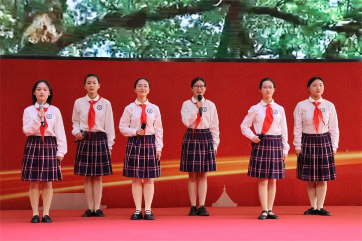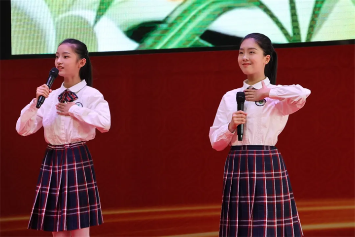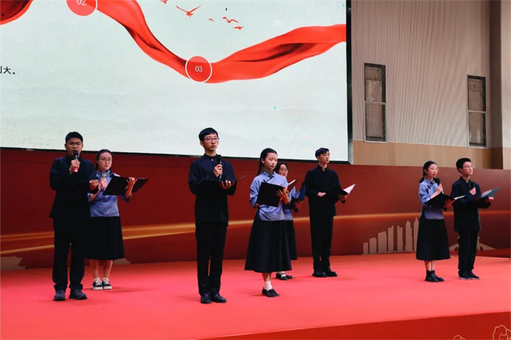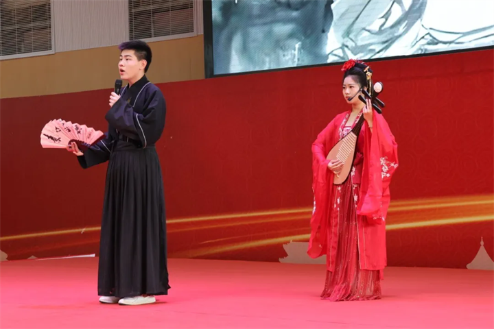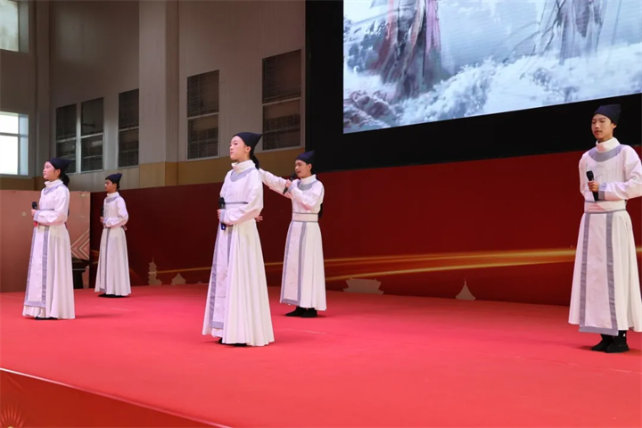 教師代表與媒體嘉賓帶來特別表演:語文教師朱培深情朗誦《祖國啊,我親愛的祖國》,巴雨、孫詩萌、袁揚(yáng)、夏文翔四位教師以鏗鏘合誦演繹《黃河頌》;揚(yáng)州新聞廣播主持人童健、李毅、立中合作誦讀《如果沒有李白》,通過古今對話呈現(xiàn)詩仙李白的文學(xué)魅力。