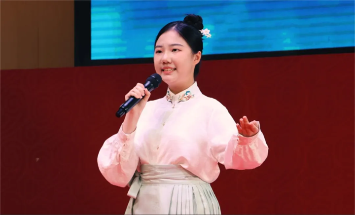 同學(xué)們的參賽作品以多元形式詮釋經(jīng)典,既有對傳統(tǒng)詩文的深情致敬,也不乏創(chuàng)新表達(dá)。既有家國篇章,又有古韻今承;既有生命禮贊,又體現(xiàn)創(chuàng)意融合?!肚啻褐袊芬约ぐ喝赫b展現(xiàn)民族復(fù)興的鏗鏘誓言,《秋天里的中國》用聲線起伏描繪豐收圖景,傳遞新時代的自信與豪情;《岳陽樓記》通過錯落有致的朗誦節(jié)奏再現(xiàn)“先憂后樂”的士人情懷,《將進(jìn)酒》以聲音的收放自如演繹詩仙李白的灑脫氣度;《永遠(yuǎn)的第十一位教師》通過質(zhì)樸對話致敬教育堅守者,真摯情感引發(fā)共鳴;《相信未來》創(chuàng)新加入多聲部吟誦,《致橡樹》運用燈光與音效的層次變化,拓展了經(jīng)典誦讀的表現(xiàn)維度。