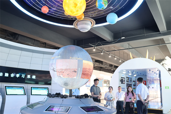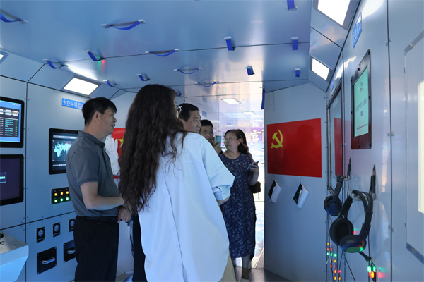 6月5日下午,來賓們來到鳳棲湖校區(qū)。在校區(qū)校長朱云峰的帶領(lǐng)下參觀了景色宜人、環(huán)境優(yōu)雅、布局有致、設(shè)施先進(jìn)的鳳棲湖校園。考察團(tuán)依次走訪了“樹人賦”文化墻、語文閱讀課程基地、石油園與地理館、尚美藝術(shù)課程基地。沿途,朱自清文學(xué)社、夢(mèng)想劇場(chǎng)、梁式抽油機(jī)、天和核心艙模型、華服工作坊等特色場(chǎng)景,令來賓深刻感受到我校校園建設(shè)的特色,對(duì)我?,F(xiàn)代化的軟硬件設(shè)施贊不絕口。