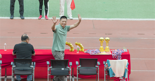 6月4日下午,樹人學(xué)校鳳棲湖校區(qū)舉行了2025年度“校長杯”足球聯(lián)賽男子組決賽。樹人學(xué)校黨委書記、校長唐煒,副校長朱云峰、趙平,高一年級主任汪柳,總務(wù)處副主任吳濤出席本次活動(dòng)。本次決賽的裁判員為特邀裁判員——國家二級足球裁判夏梅,邊裁為我校劉昊、朱浩哲老師,高一年級全體同學(xué)和班主任參加了本次活動(dòng)。