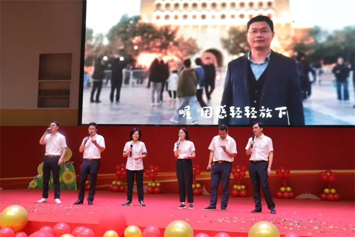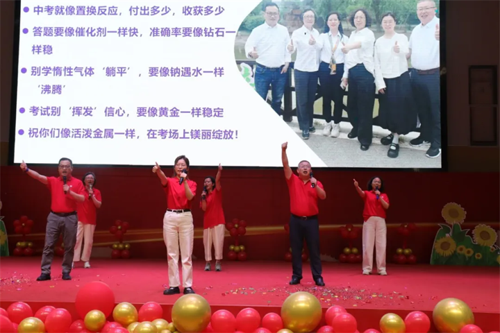 燈光轉(zhuǎn)亮,初三教師團隊驚艷登場。學(xué)子奔赴考場在即,親愛的老師們則在繁忙的教學(xué)工作之余用精心準(zhǔn)備的表演和真摯的寄語,為我們的中考征程注入勇氣與力量!