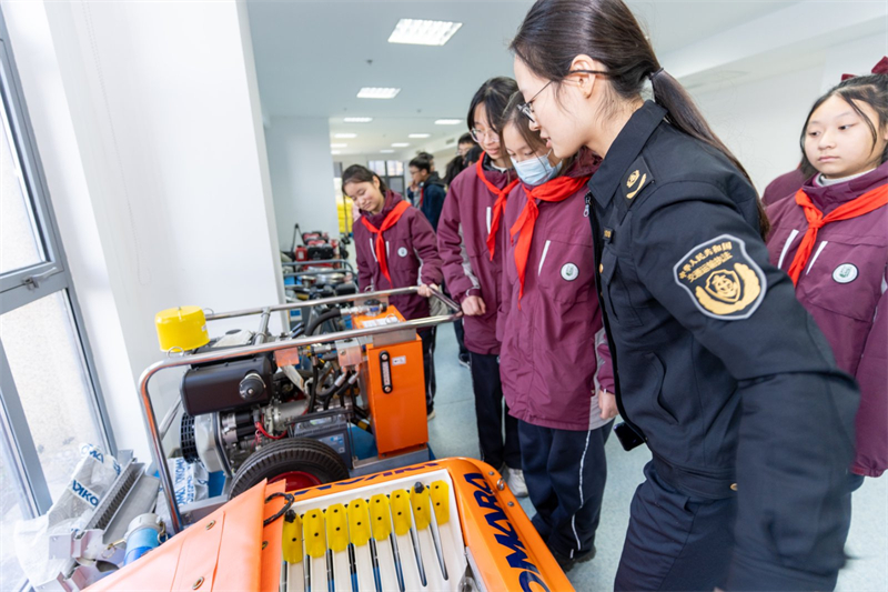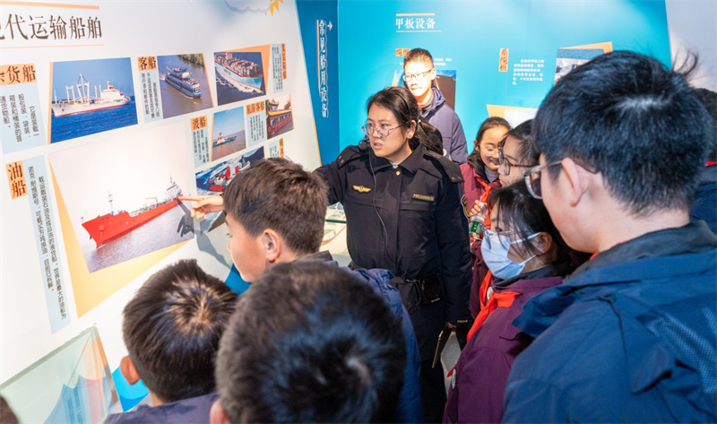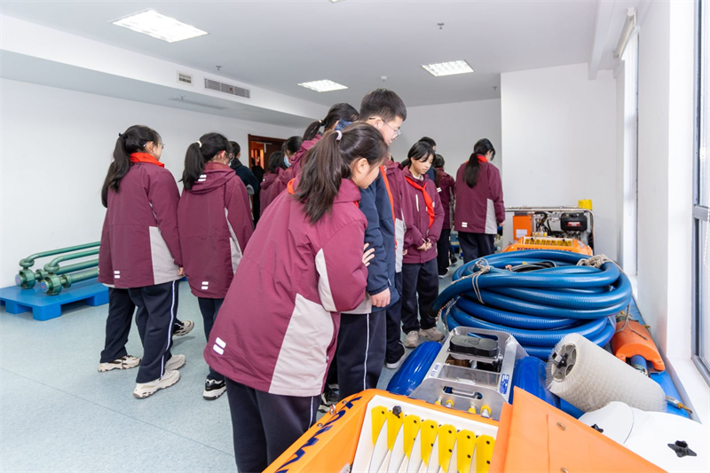 在交通執(zhí)法指揮中心、應(yīng)急設(shè)備庫,通過講解員細(xì)致的講解,同學(xué)們近距離感受了水上交通執(zhí)法、應(yīng)急搜救和線上指揮工作,學(xué)習(xí)了各類水上搜救應(yīng)急設(shè)備的名稱、用途及工作原理。一問一答之間,同學(xué)們對水上安全工作有了更多立體的感知。