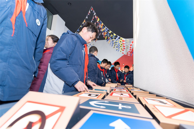在揚(yáng)州省級水上交通安全宣傳教育基地里,講解員通過播放科普視頻、典型事故模擬、互動問答、模型講解等方式,讓同學(xué)們了解了舟船發(fā)展的歷史、常見設(shè)備用法以及水上交通安全標(biāo)志的類別含義,并現(xiàn)場演示傳授了心肺復(fù)蘇急救方法。