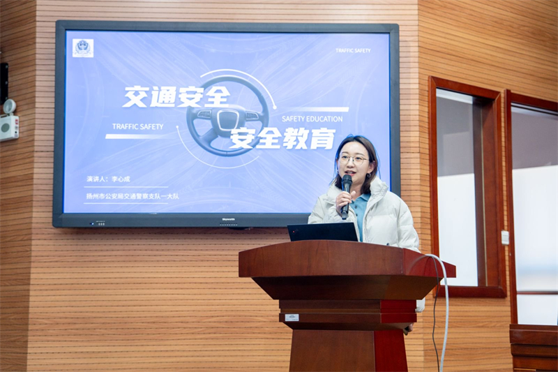 揚(yáng)州市公安交警支隊一大隊交警面對面向在坐同學(xué)們講解交通安全常識,并結(jié)合典型交通事故案例,分析事故發(fā)生原因及引發(fā)的后果,深入說明了逆道行駛、闖紅燈、不系安全帶、騎乘電動車不佩戴安全頭盔等交通違法行為的重重危害,提醒同學(xué)們牢記交通安全常識,自覺養(yǎng)成良好的交通習(xí)慣。交通執(zhí)法支隊的水上交通安全形象大使則以學(xué)生們常見的船舶類型為切入點(diǎn),通過PPT演示、發(fā)放手冊等通俗易懂的授課方式,深入淺出地向同學(xué)們講解了水上安全的重要性以及水上游船出行的注意事項,并同步傳授防溺水、水中遇險報警和自救等基本安全知識。課堂上執(zhí)法人員還手把手教同學(xué)們正確使用救生衣,并現(xiàn)場邀請學(xué)生代表上臺開展“救生衣穿戴”大比拼,讓學(xué)生“第一視角”感受救生衣的穿戴方式。上臺參賽代表邊練邊比、踴躍參與,通過比拼成功掌握了救生衣穿戴技巧。