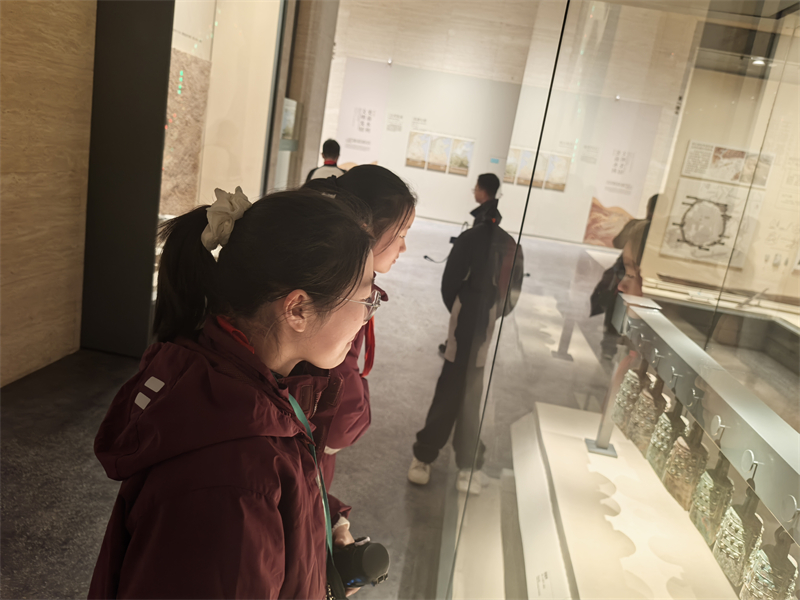 在“運河的開鑿與變遷”展廳,逼真的模型和生動的多媒體展示讓師生們直觀地感受到了古代勞動人民開鑿大運河的艱辛與智慧。有同學(xué)感慨道:“看到這些,我不禁對古人的堅韌和創(chuàng)造力肅然起敬,大運河真是中華民族的偉大奇跡?!倍谖幕故緟^(qū),精美的書畫、瓷器以及民俗文物等,則展現(xiàn)了大運河沿線獨特的文化魅力,引得同學(xué)們駐足欣賞、嘖嘖稱奇。