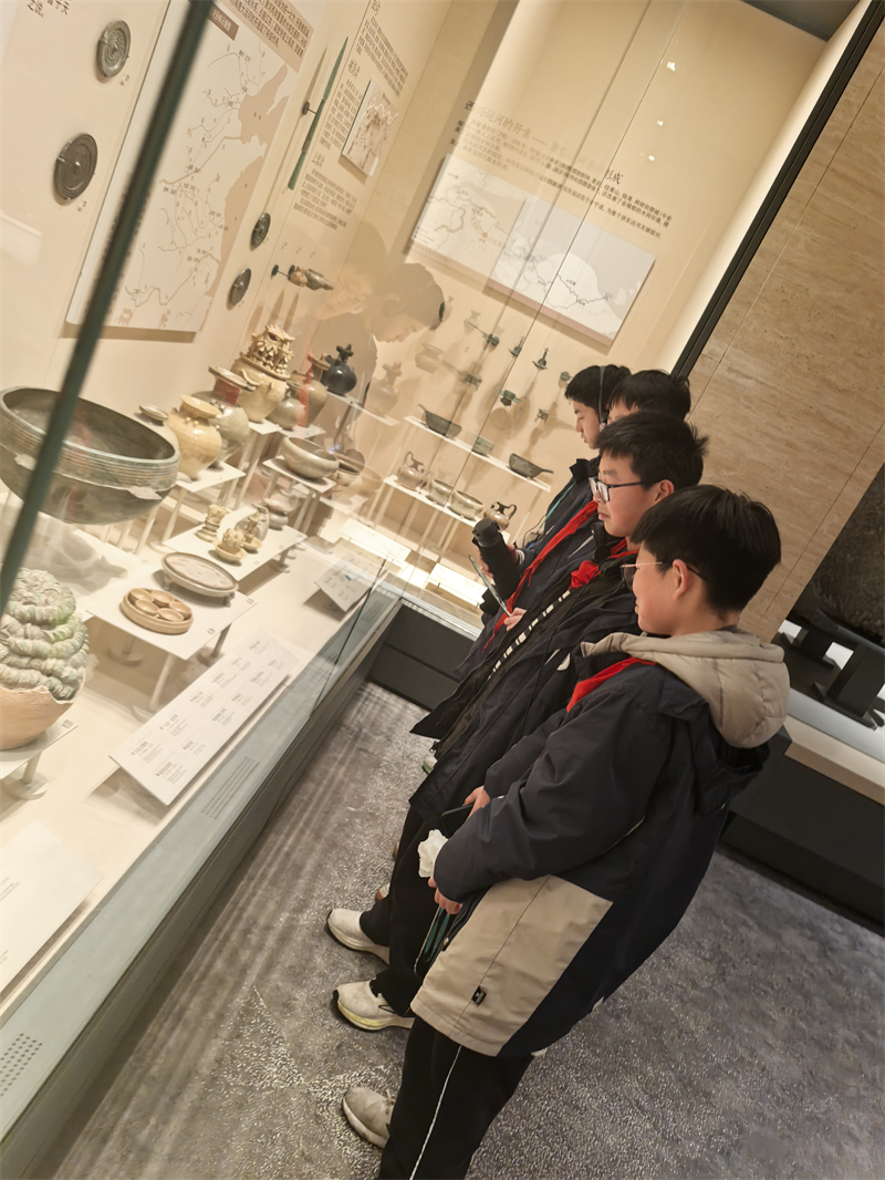 活動當(dāng)日,同學(xué)們懷著期待的心情抵達大運河博物館。這座宏偉的博物館坐落于江蘇省揚州市廣陵區(qū)開發(fā)東路,其獨特的建筑風(fēng)格融合了現(xiàn)代與傳統(tǒng)元素,仿佛在訴說著大運河的古老故事。同學(xué)們佩戴講解機依次參觀了各個展廳,從大運河的開鑿背景、工程建設(shè)到沿線的經(jīng)濟文化交流,豐富多樣的展品和詳實的史料全方位地展示了大運河的輝煌歷史與深遠影響。