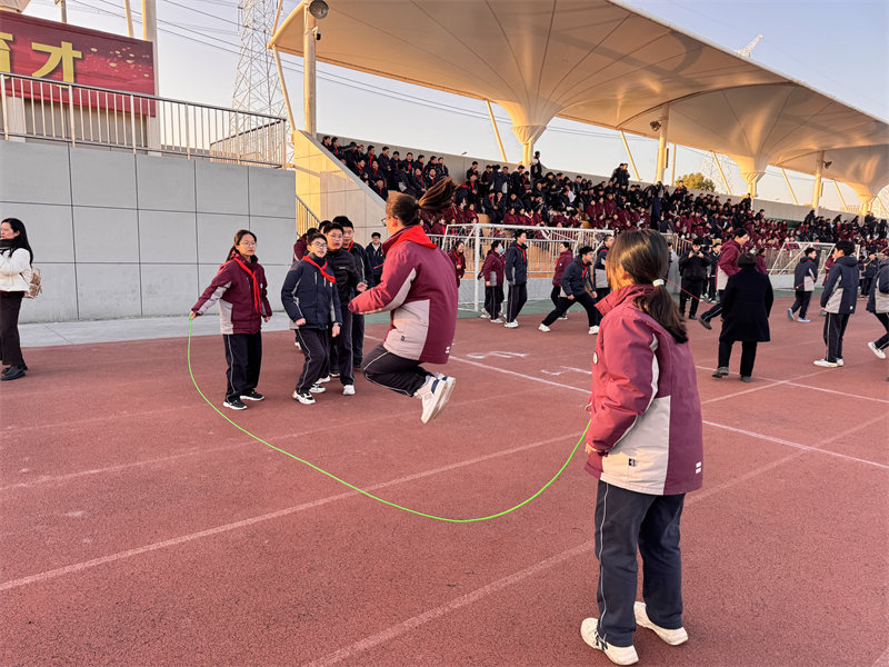 在流水跳長(zhǎng)繩比賽中,10人一組,學(xué)生們身姿矯健,如同輕盈的燕子,在長(zhǎng)繩的律動(dòng)中躍起、落下,每一次跳躍都伴隨著觀眾的歡呼,每一次落地都激起一片熱烈的掌聲,歡快的樂(lè)章奏響了青春的贊歌。