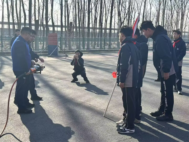 在訓(xùn)練區(qū)域,消防人員展示了水帶水槍、破拆工具組等消防器具的操作技巧,現(xiàn)場演示了迅速穿戴防護服、攀爬掛鉤梯等技能。消防員們精湛的技藝令學(xué)生們深感欽佩,眾多學(xué)生踴躍參與體驗環(huán)節(jié)。在消防人員悉心指導(dǎo)下,學(xué)生們親身體驗高壓水槍操作以及防護服穿脫過程,從而深切領(lǐng)悟到了消防工作的艱辛與危險。