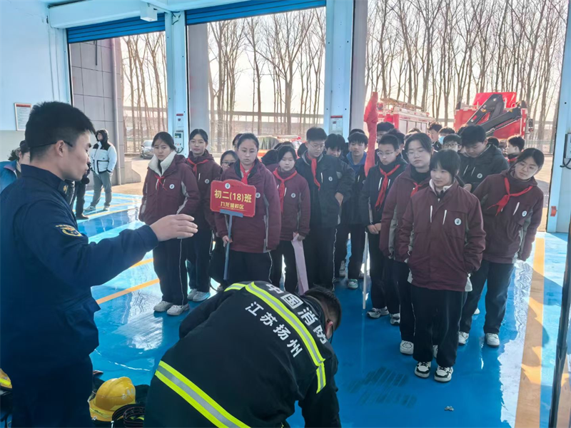 為強化學(xué)生消防安全意識,提升其火災(zāi)應(yīng)對能力,2025年1月16日上午,樹人學(xué)校九龍湖校區(qū)初二(18)班全體學(xué)生,走進廣陵路消防救援站,開展了一場極具教育意義與實踐價值的消防安全宣傳教育活動。