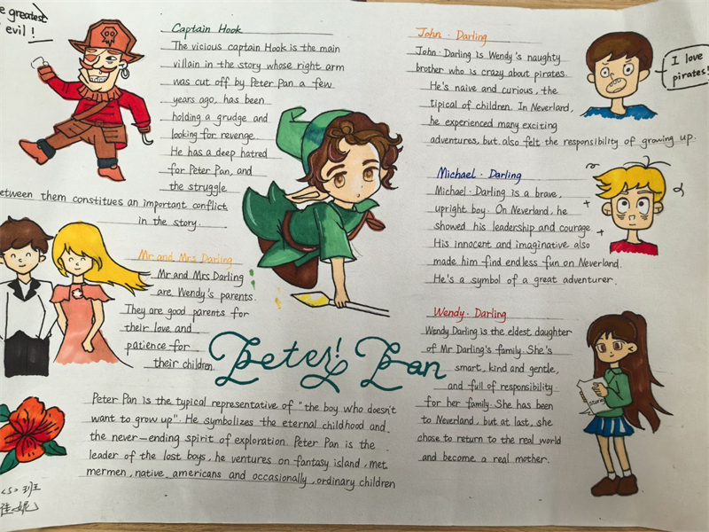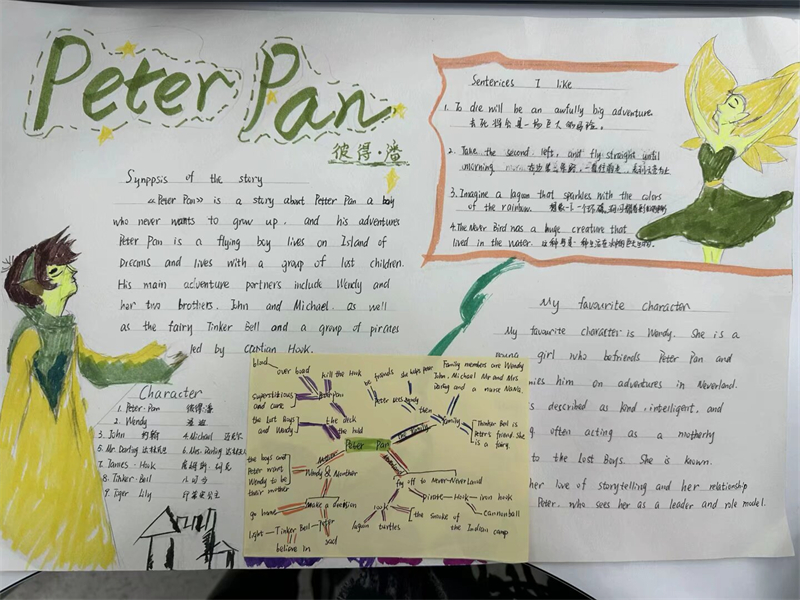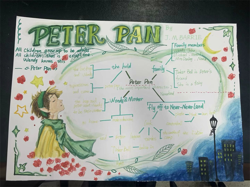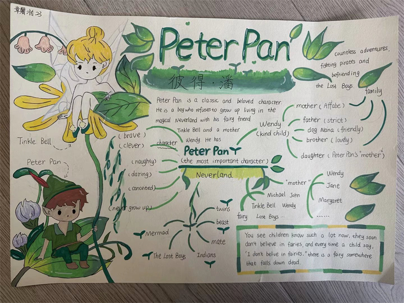 在剛剛過去的寒假中,為激發(fā)學生對英語名著的閱讀興趣,提升學生的語言表達能力和創(chuàng)造力,揚州樹人學校九龍湖校區(qū)初一英語組于2月12日開展了以英語名著《彼得潘》和《黑駿馬》為主題的閱讀手抄報評比活動。此次活動得到了學生的積極響應,學生們踴躍參與,用他們的奇思妙想和精湛的繪畫技巧,創(chuàng)作出了一幅幅精彩紛呈的手抄報作品。