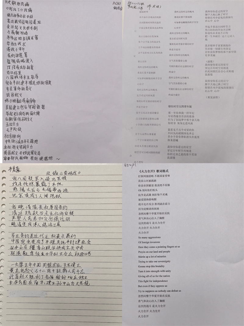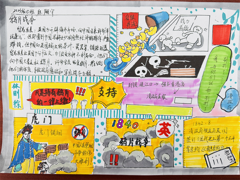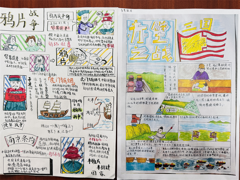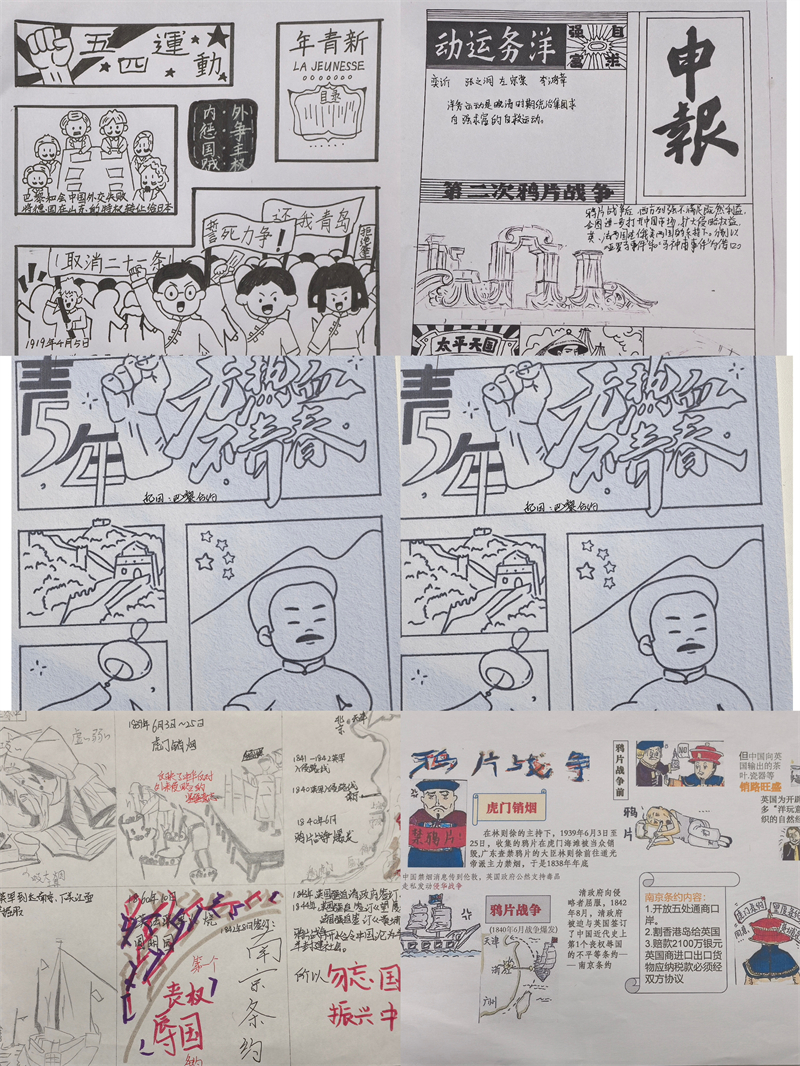 此次作業(yè)包括歷史人物角色扮演、近代歷史事件漫畫(huà)創(chuàng)作、制作歷史時(shí)間軸和歷史歌曲改編四項(xiàng)內(nèi)容,形式新穎、內(nèi)容豐富。