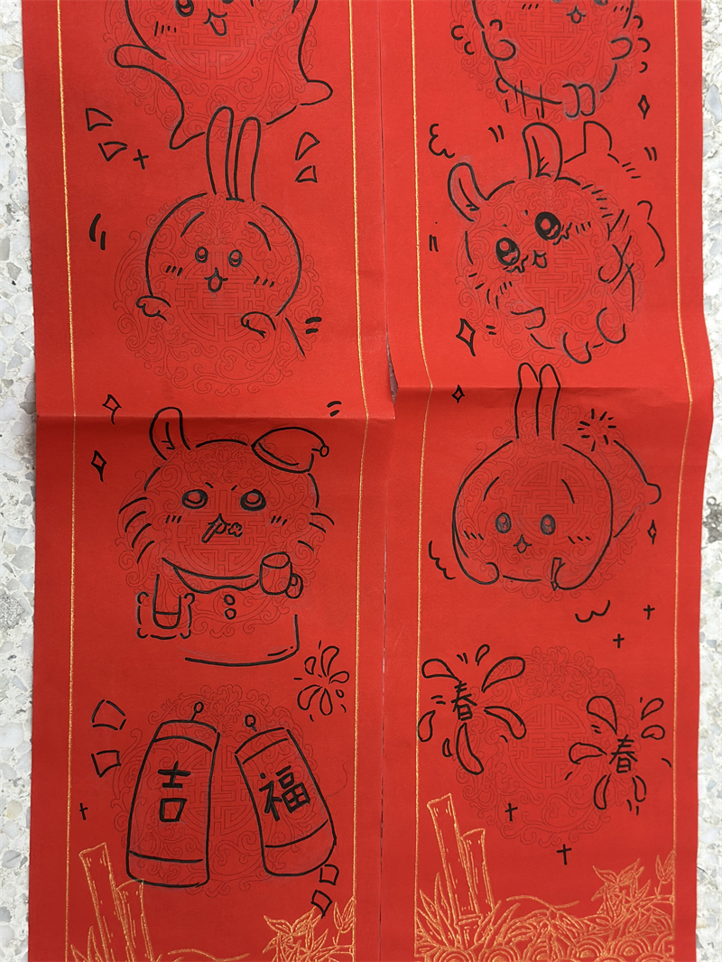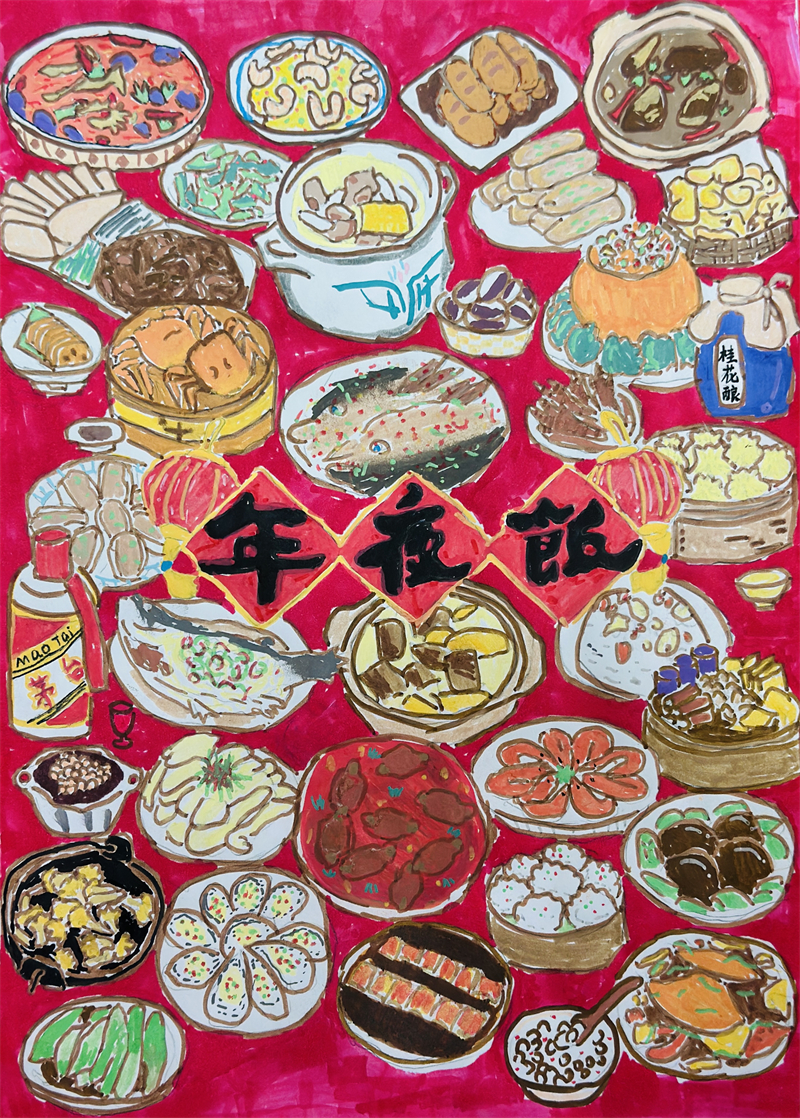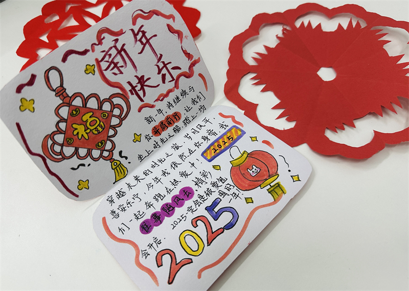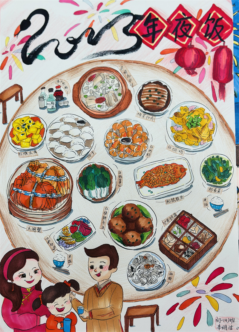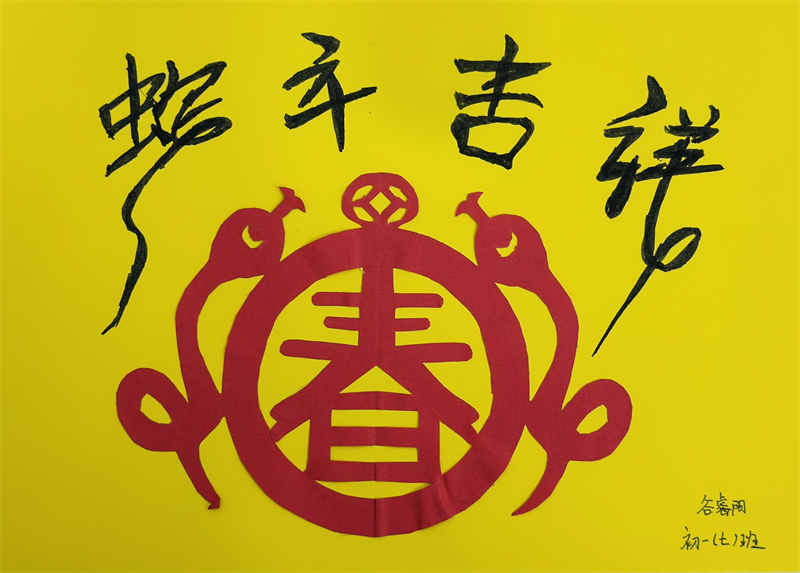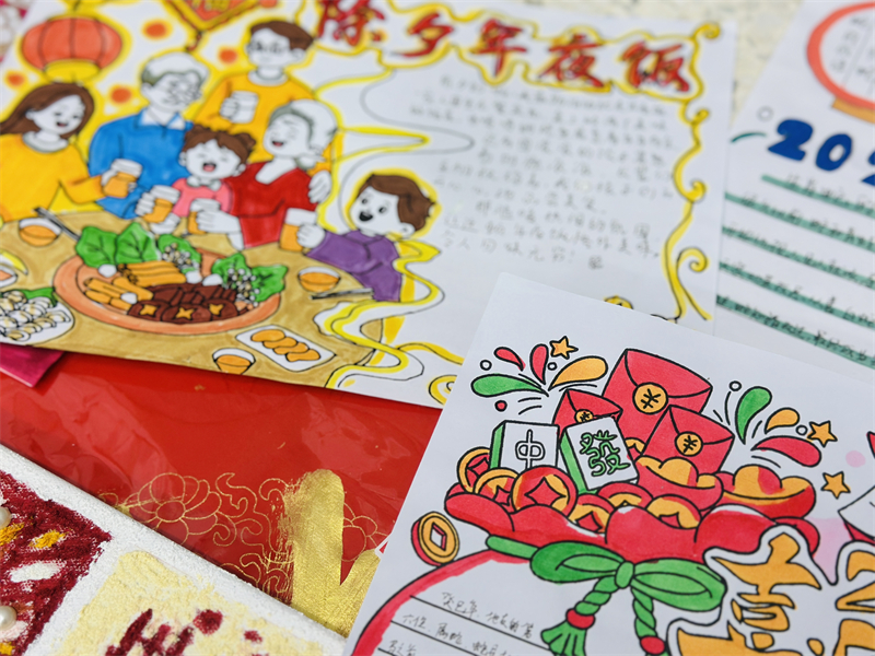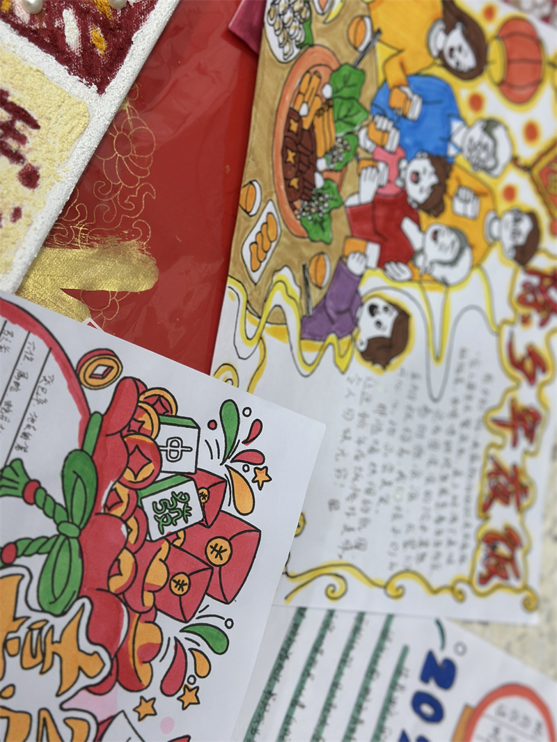 在創(chuàng)作過程中,學生們充分發(fā)揮想象力與動手能力,作品主題鮮明、造型美觀、色彩豐富、制作精美,充分展現(xiàn)了春節(jié)的喜慶氛圍和年味。一幅幅窗花、一副副對聯(lián)、一張張年夜飯畫作和一張張賀卡,不僅體現(xiàn)了學生們對傳統(tǒng)節(jié)日的熱愛,也展現(xiàn)了他們對藝術(shù)的獨特理解與表達。