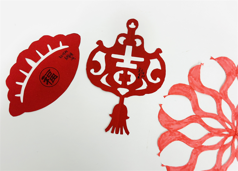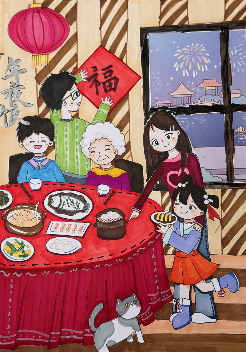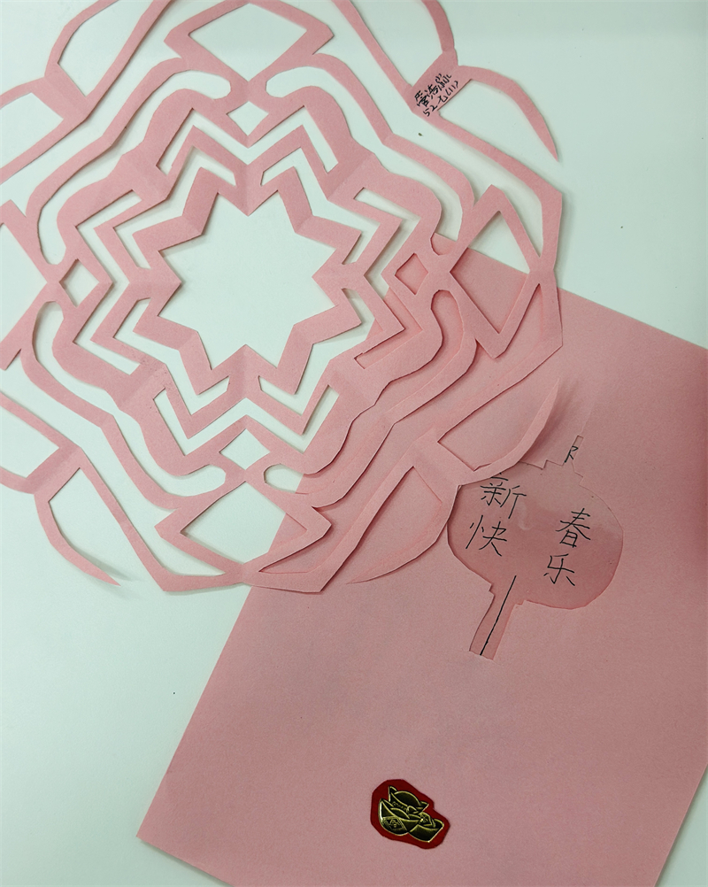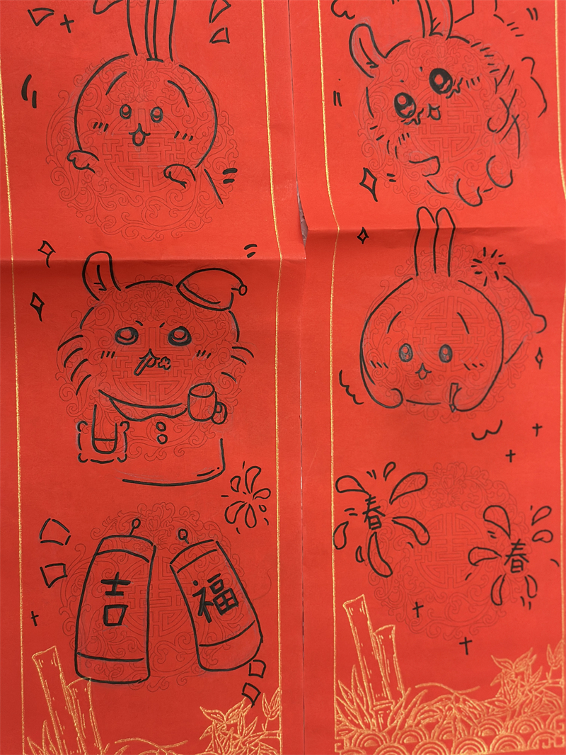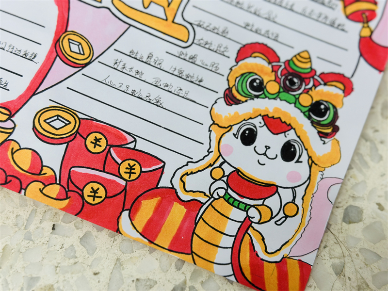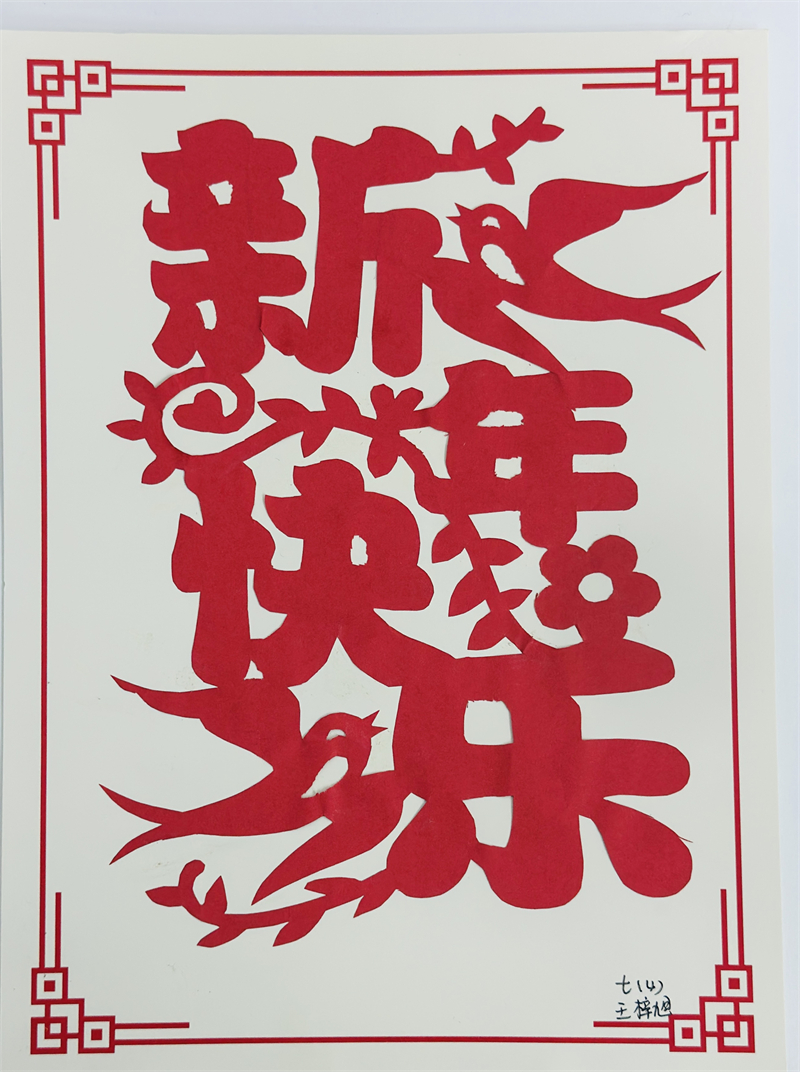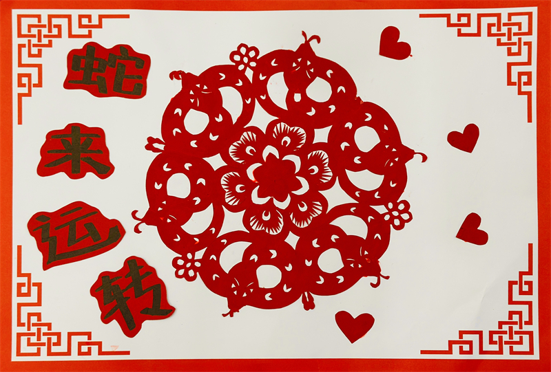 在創(chuàng)作過程中,學生們充分發(fā)揮想象力與動手能力,作品主題鮮明、造型美觀、色彩豐富、制作精美,充分展現(xiàn)了春節(jié)的喜慶氛圍和年味。一幅幅窗花、一副副對聯(lián)、一張張年夜飯畫作和一張張賀卡,不僅體現(xiàn)了學生們對傳統(tǒng)節(jié)日的熱愛,也展現(xiàn)了他們對藝術(shù)的獨特理解與表達。