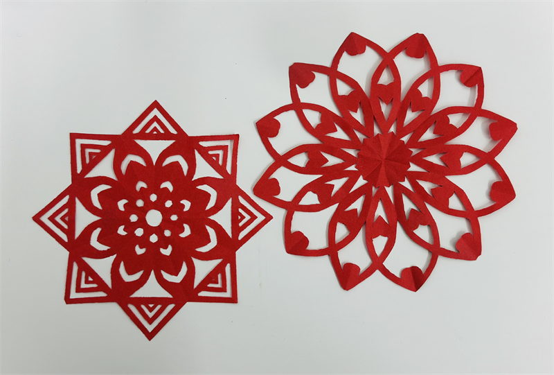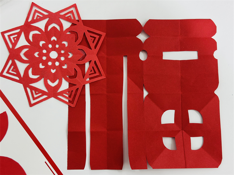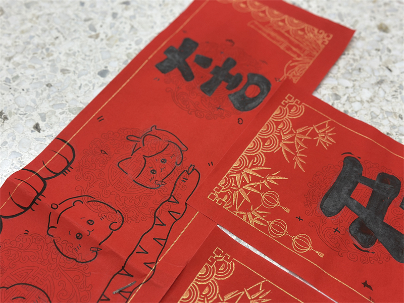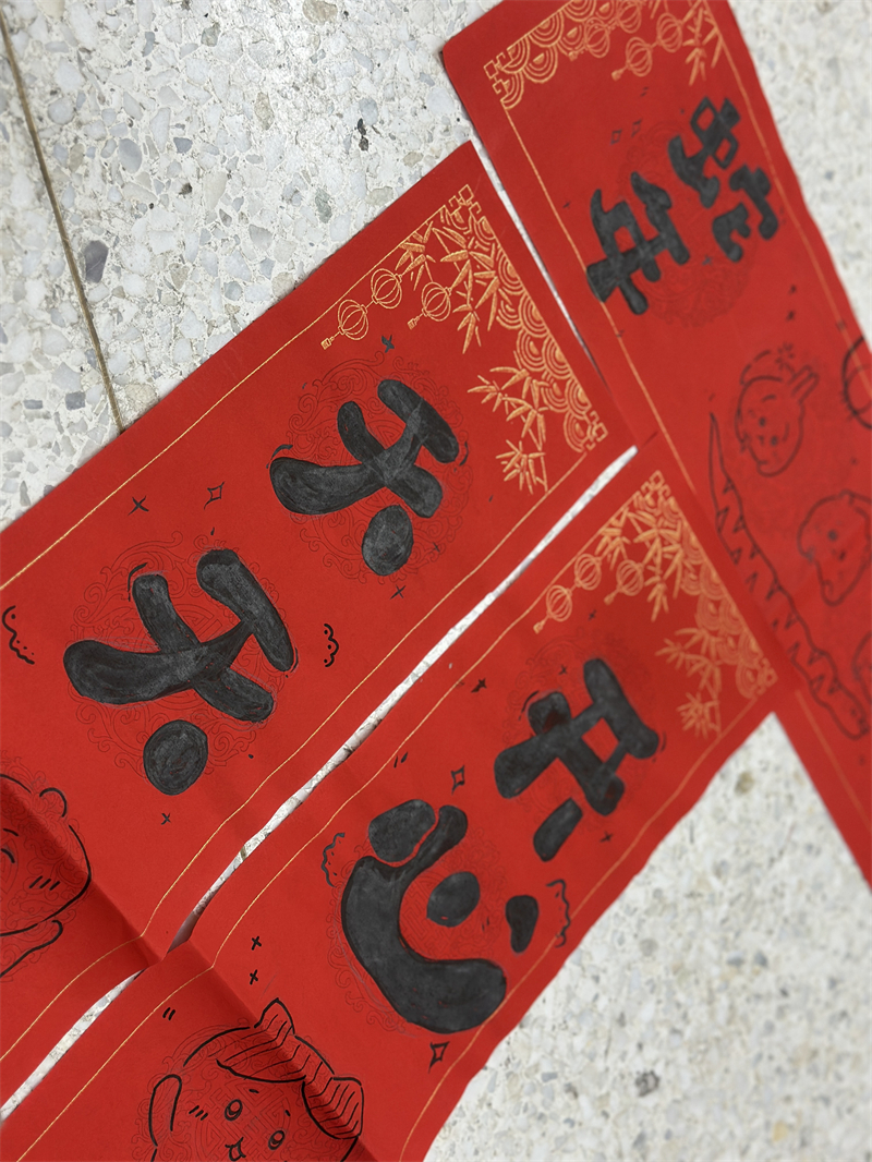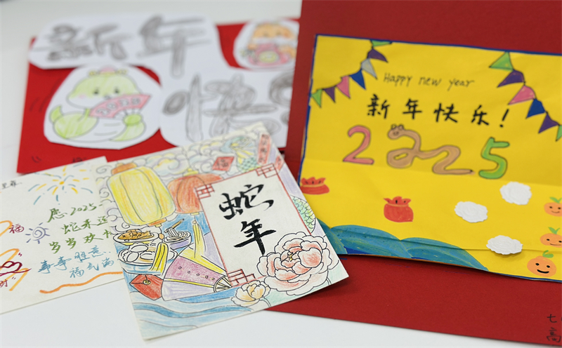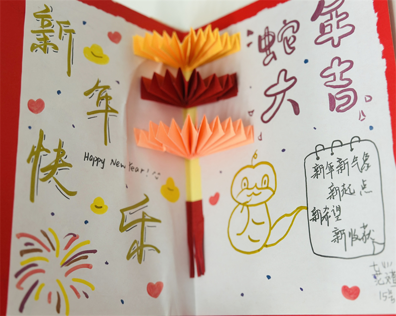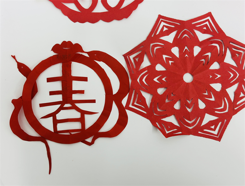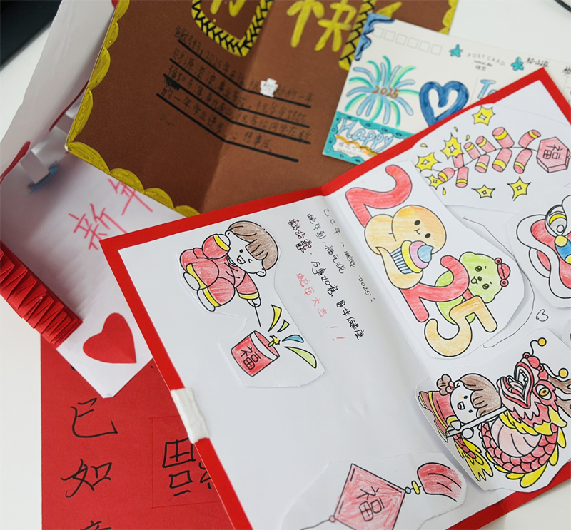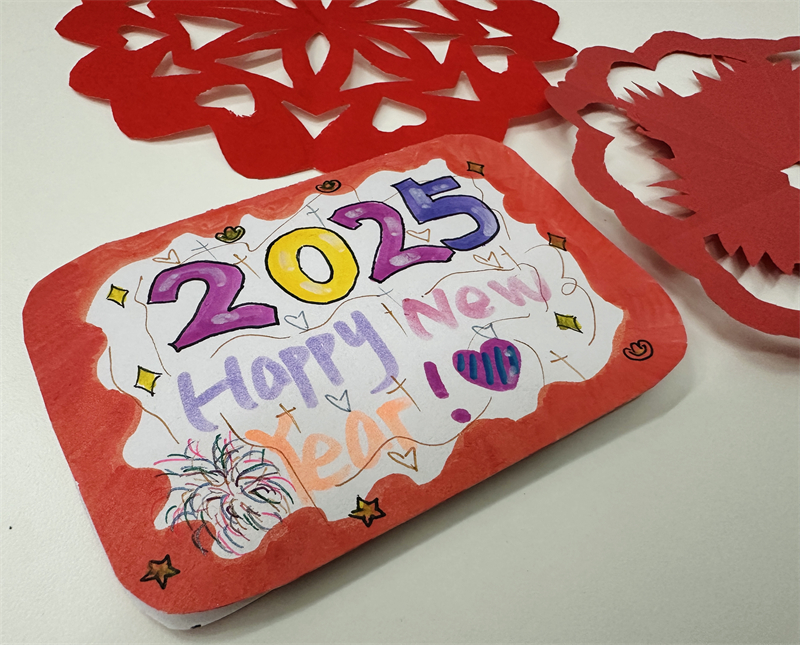 在創(chuàng)作過程中,學生們充分發(fā)揮想象力與動手能力,作品主題鮮明、造型美觀、色彩豐富、制作精美,充分展現(xiàn)了春節(jié)的喜慶氛圍和年味。一幅幅窗花、一副副對聯(lián)、一張張年夜飯畫作和一張張賀卡,不僅體現(xiàn)了學生們對傳統(tǒng)節(jié)日的熱愛,也展現(xiàn)了他們對藝術(shù)的獨特理解與表達。