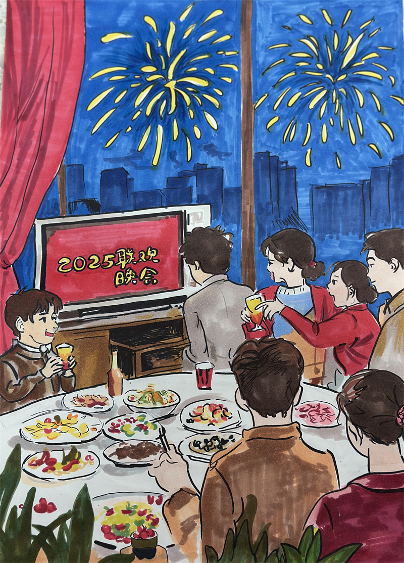 本次活動共設(shè)計了四項豐富多彩的美術(shù)實踐任務(wù),學生們可根據(jù)興趣任選其一完成?;顒右粸椤凹艨踢^年窗花”,鼓勵學生與家長共同參與,剪刻出美麗的窗花,裝點家居環(huán)境,體驗傳統(tǒng)民俗的魅力?;顒佣椤皶鴮懶麓簩β?lián)”,學生們可以用美術(shù)字或書法字體表現(xiàn)文字,并通過剪紙、折紙、粘貼、添畫等方式進行裝飾,展現(xiàn)創(chuàng)意與藝術(shù)結(jié)合的美感。活動三為“畫除夕年夜飯”,學生們通過繪畫或手工的方式,描繪出“我家的年夜飯”,記錄團圓時刻的溫馨與幸福?;顒铀臑椤爸谱靼菽曩R卡”,學生們?yōu)橛H人、朋友設(shè)計制作龍年新春賀卡,傳遞新年的祝福與問候。