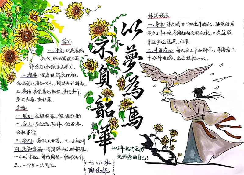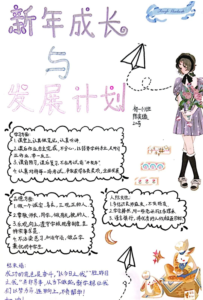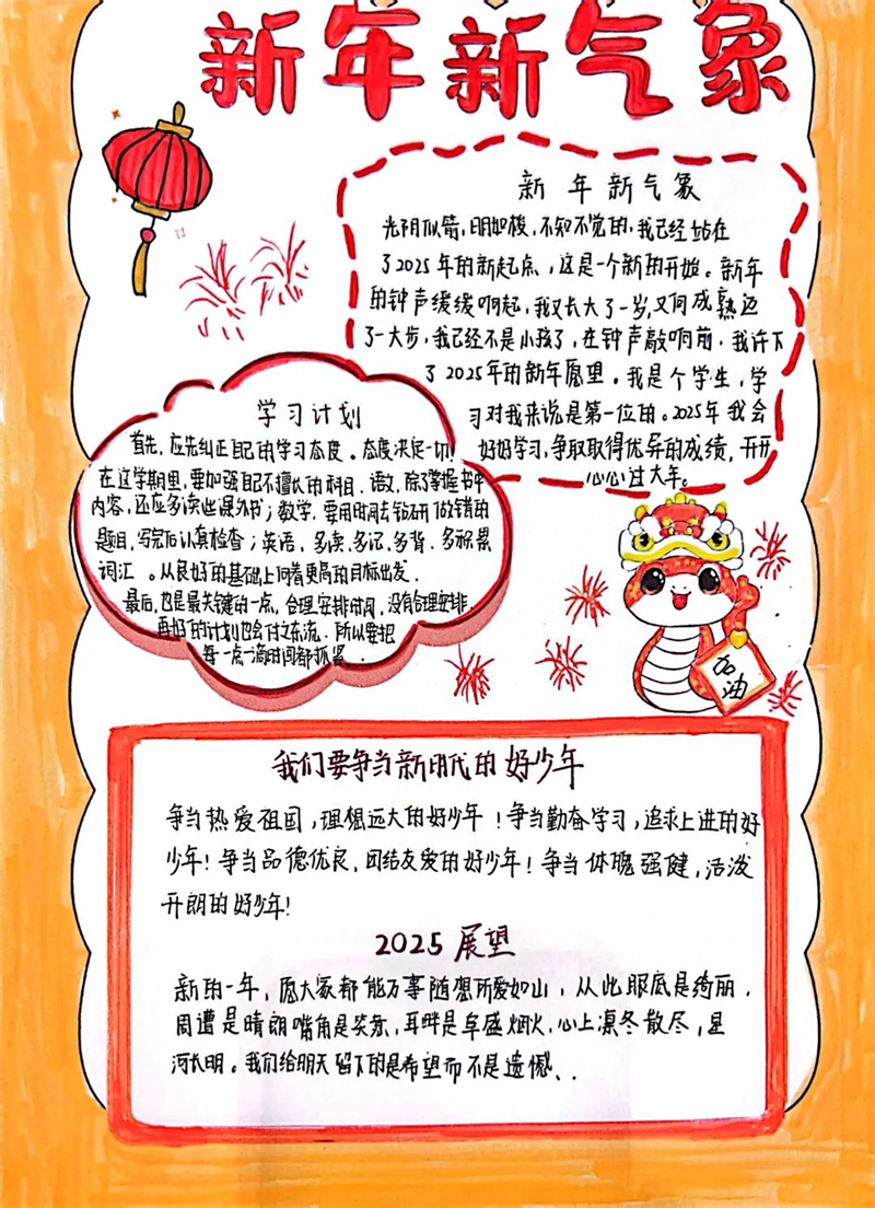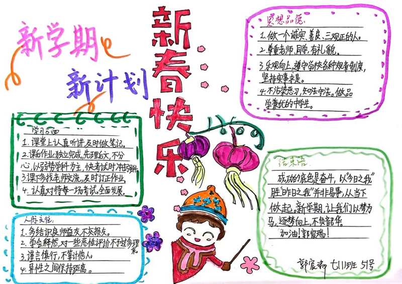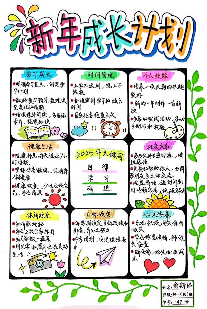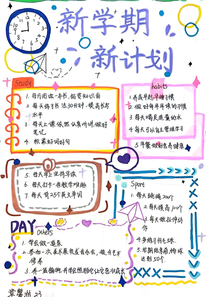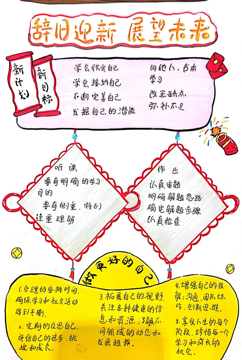看來,學生們都為新學期制定了詳細的計劃,包括閱讀、運動、學習新技能和陪伴家人。每天堅持閱讀,拓寬知識面;規(guī)律運動,保持健康體魄;學習新技能,提升自我;與家人共度美好時光,增進家庭感情。當目標足夠明確且切實可行后,關(guān)鍵便在于付諸行動。讓我們一起堅持執(zhí)行,讓生活更加充實和美好!讓我們一起期待充滿希望的新一年!