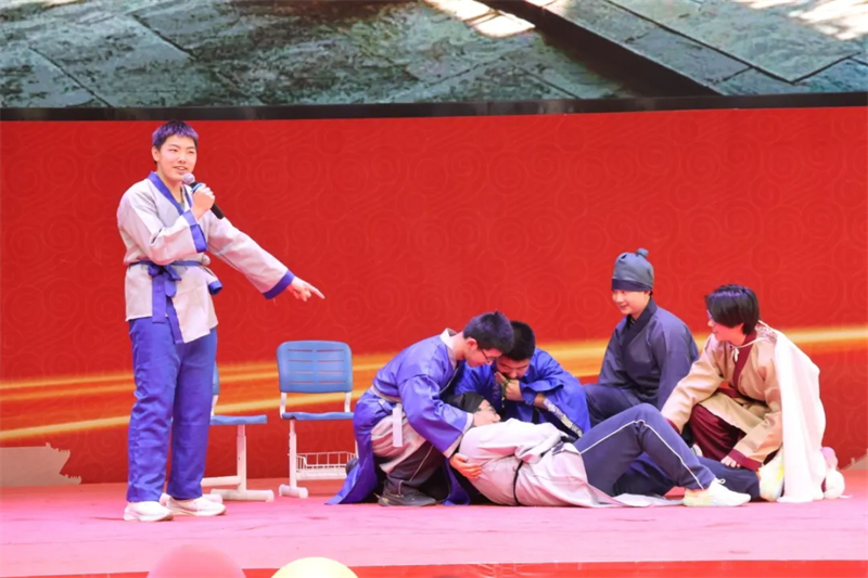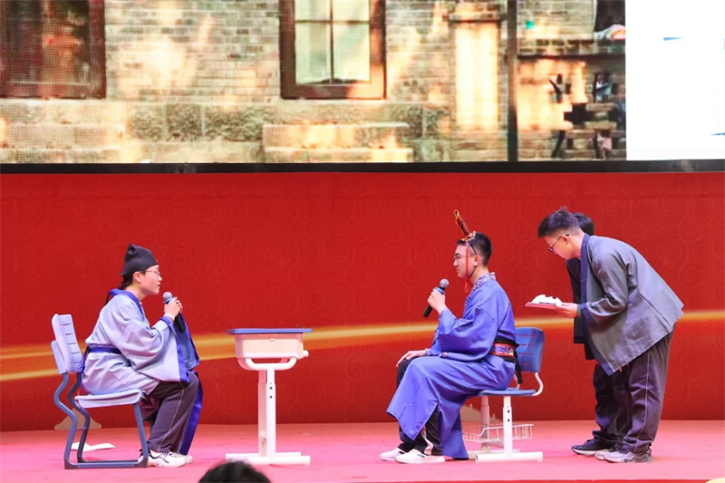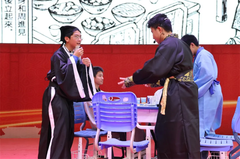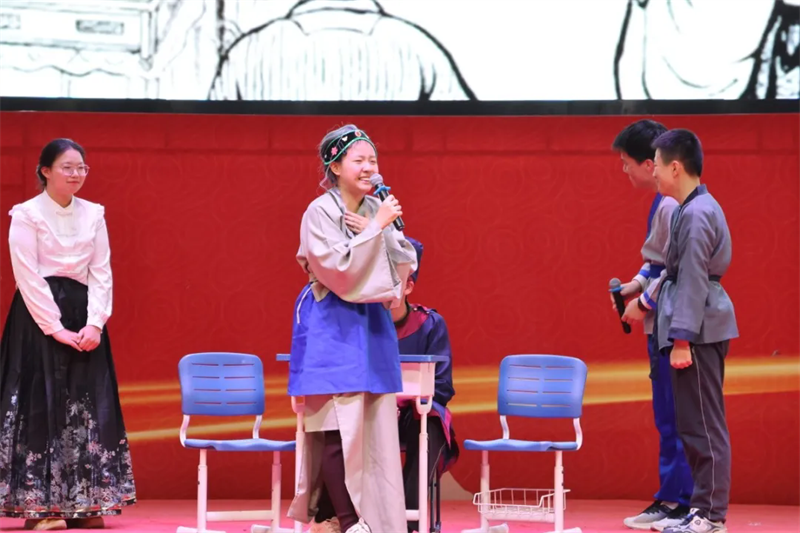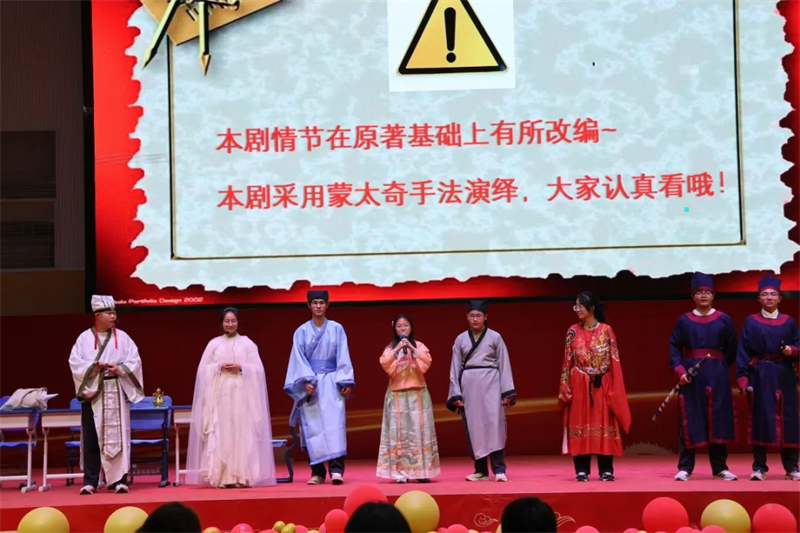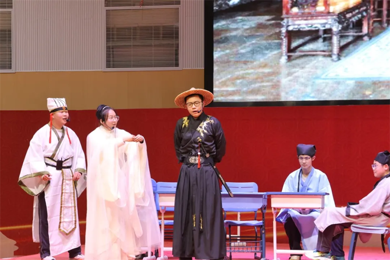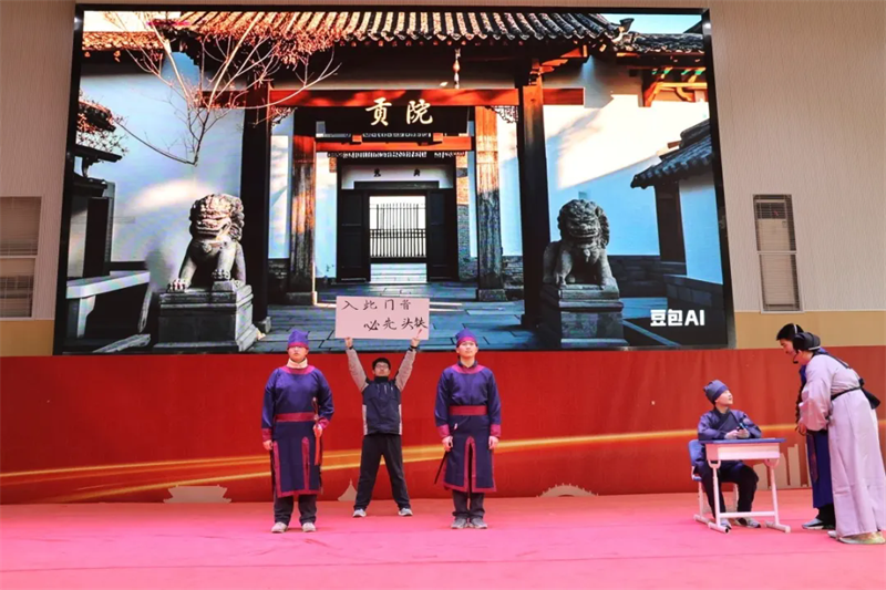 以劇載道,深耕文化育人。這不是簡(jiǎn)單的場(chǎng)景復(fù)刻,而是通過(guò)青春視角對(duì)經(jīng)典進(jìn)行當(dāng)代解讀。"初三語(yǔ)文組組長(zhǎng)黃穎表示,從劇本改編到服裝道具,學(xué)生全程參與創(chuàng)作,在研讀原著過(guò)程中深刻體悟吳敬梓筆下的社會(huì)批判精神。當(dāng)00后與200年前的儒生隔空對(duì)話(huà),經(jīng)典便不再是書(shū)本上的字,而成為照進(jìn)現(xiàn)實(shí)的一面明鏡。