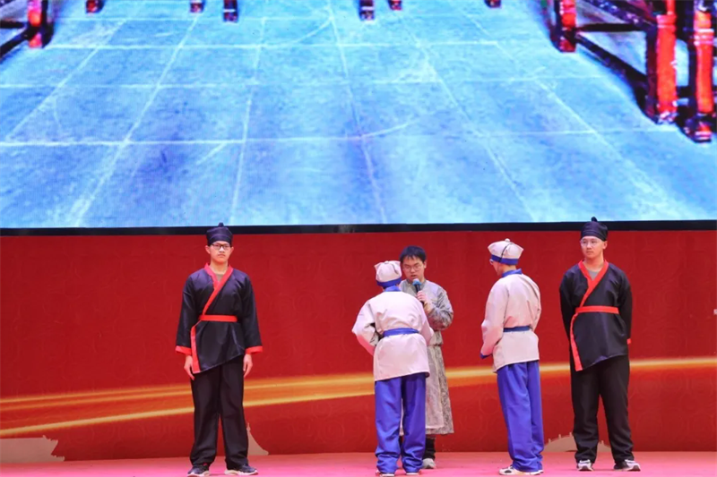 2月26日下午3點(diǎn),樹(shù)人學(xué)校九龍湖校區(qū)體育館內(nèi)掌聲雷動(dòng),一場(chǎng)以"演儒林眾相,品百味人生"為主題的《儒林外史》課本劇展演隆重舉行。初三年級(jí)學(xué)生以沉浸式舞臺(tái)演繹,再現(xiàn)清代科舉制度下眾生百態(tài),為師生帶來(lái)了一場(chǎng)跨越時(shí)空的思想盛宴。樹(shù)人學(xué)校九龍湖校區(qū)校長(zhǎng)殷翠云出席了本次活動(dòng),17個(gè)班的家長(zhǎng)代表觀摩了活動(dòng),音樂(lè)組謝曉莉、宋本正老師和九龍湖校區(qū)初三年級(jí)全體語(yǔ)文教師作為評(píng)委參加了活動(dòng)。