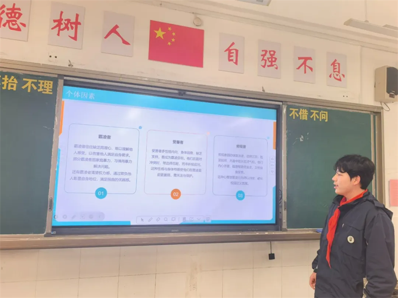 活動最后,各班心理委員們向所有同學發(fā)出倡議:從我做起,拒絕校園欺凌,不做欺凌者,也不做冷漠的旁觀者。積極參與到預防校園欺凌的行動中來,共同營造和諧、安全、健康的校園環(huán)境。