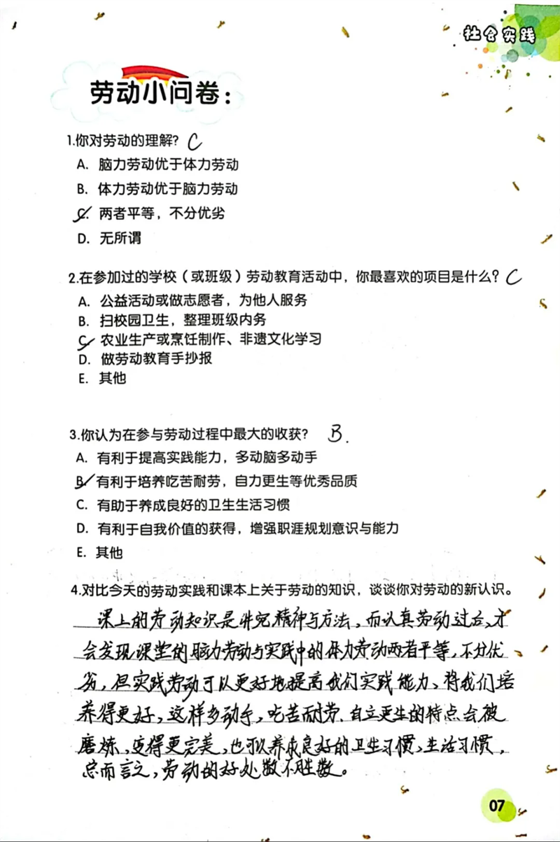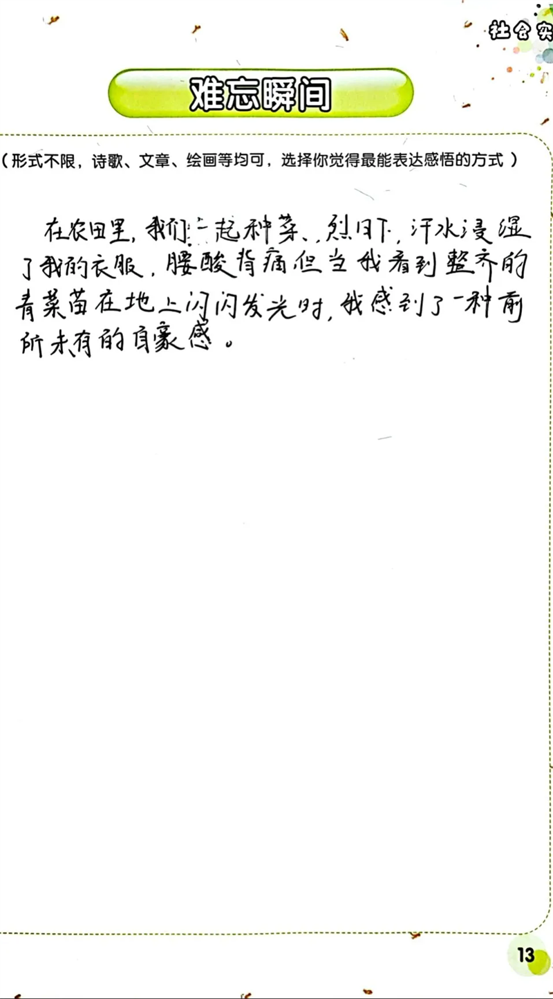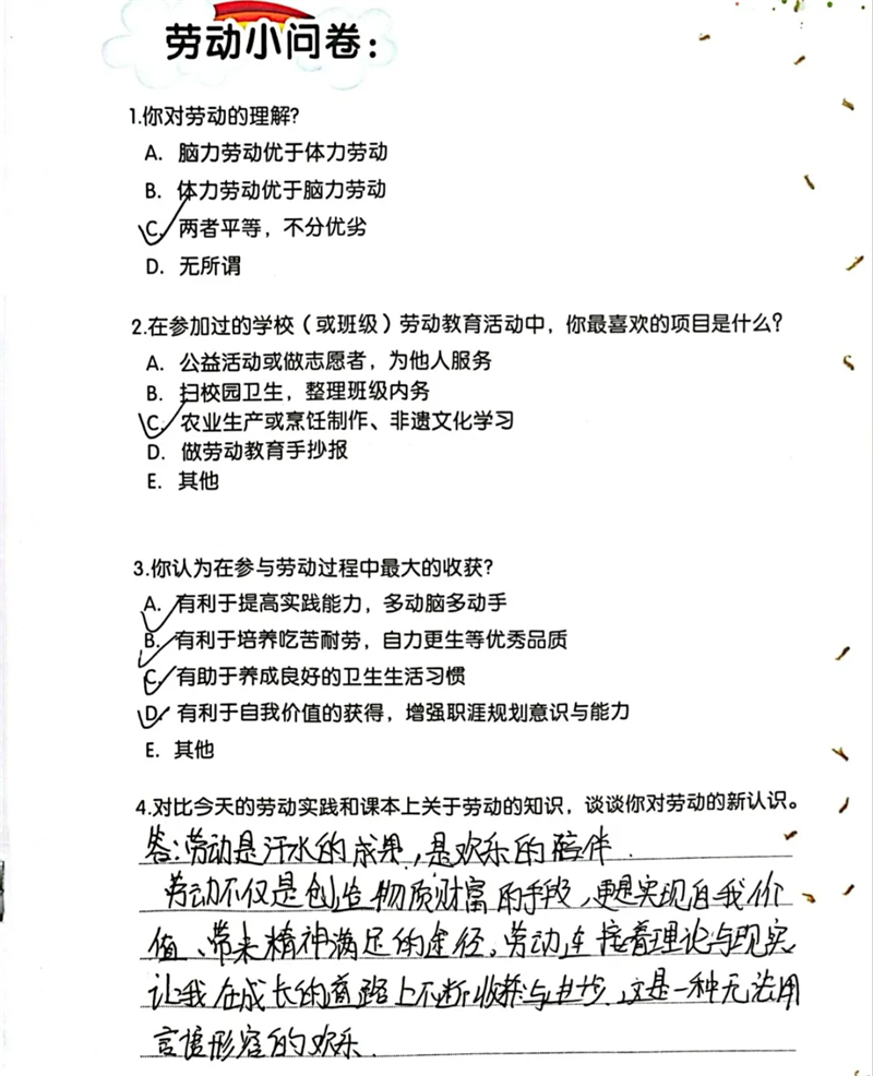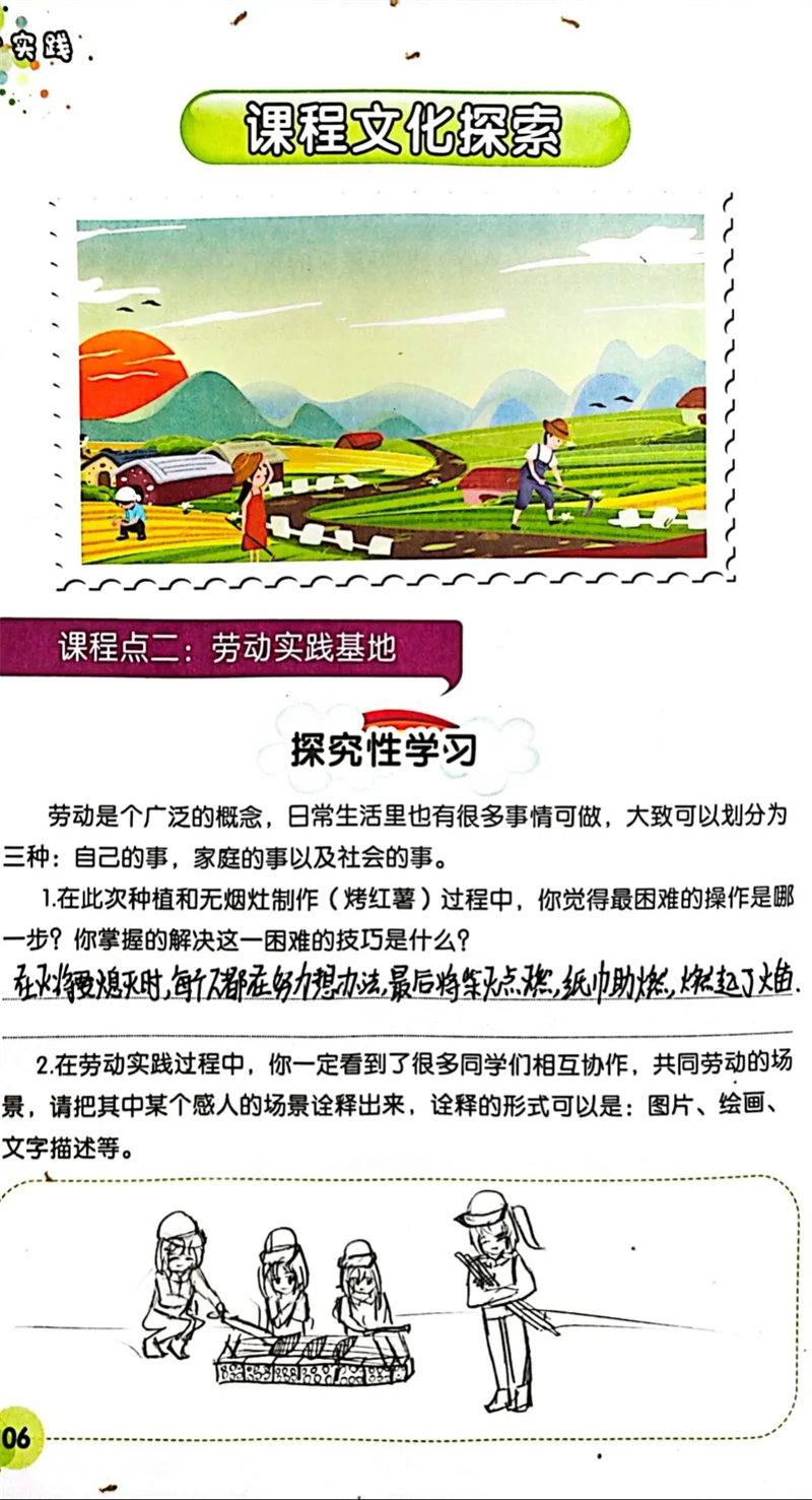 隨后,同學(xué)們來到勞動(dòng)實(shí)踐基地,參與種植與無煙灶制作(烤紅薯)等活動(dòng) 。親手翻土、播種,體驗(yàn)農(nóng)作物生長的初始;合作搭建無煙灶,等待紅薯烤制的過程,讓大家對勞動(dòng)有了全新認(rèn)識。勞動(dòng)不再是課本上抽象的概念,而是親身實(shí)踐中對自然的探索、對技能的掌握,以及對吃苦耐勞精神的培養(yǎng)。同學(xué)們感悟到,勞動(dòng)是創(chuàng)造美好生活的基石,腦力勞動(dòng)與體力勞動(dòng)同等重要,每一次付出都能帶來成長與收獲。