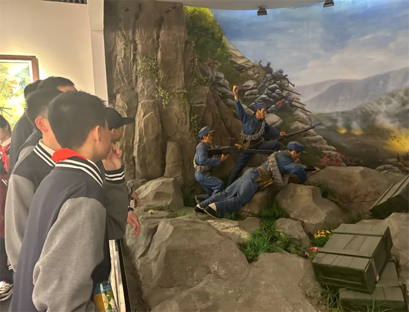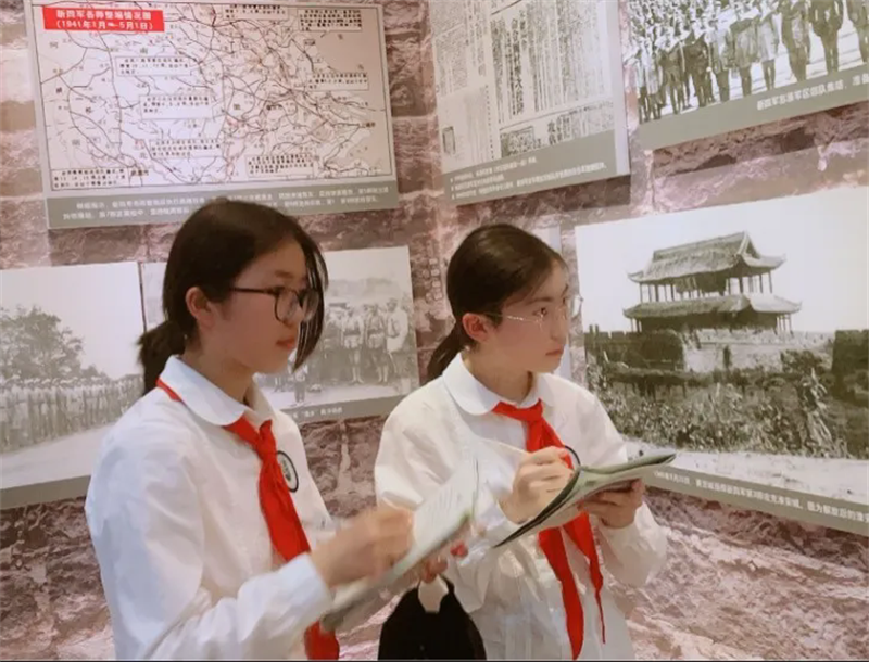 在茅山新四軍紀(jì)念館,同學(xué)們仿佛穿越時(shí)空,置身于那段烽火歲月。陳列的珍貴文物、歷史照片與場景還原,生動(dòng)再現(xiàn)了新四軍在蘇南地區(qū)英勇抗戰(zhàn)的事跡。韋崗戰(zhàn)斗的勝利、夜襲新豐車站的果敢,先烈們的無畏精神令同學(xué)們肅然起敬?!案锩攘矣来共恍唷保@不僅僅是一句口號,更是同學(xué)們內(nèi)心深處對先輩們的崇高敬意。