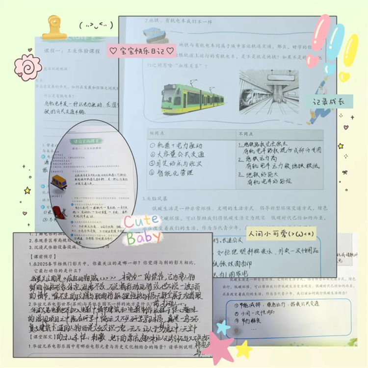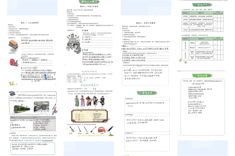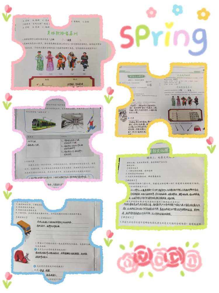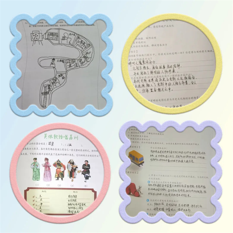 在工業(yè)體驗(yàn)基地,同學(xué)們化身為探險(xiǎn)家,積極了解能源環(huán)境現(xiàn)狀,探秘有軌電車,手冊(cè)上寫滿對(duì)科技的憧憬與對(duì)環(huán)保的思考。非遺課堂中,昆曲、評(píng)彈聲聲入耳,親手繪制的多彩臉譜,滿是對(duì)傳統(tǒng)文化的熱愛(ài),手冊(cè)里梳理著文化脈絡(luò)。電影世界里,他們探索拍攝幕后,手冊(cè)記錄著對(duì)熱門影片的見(jiàn)解。