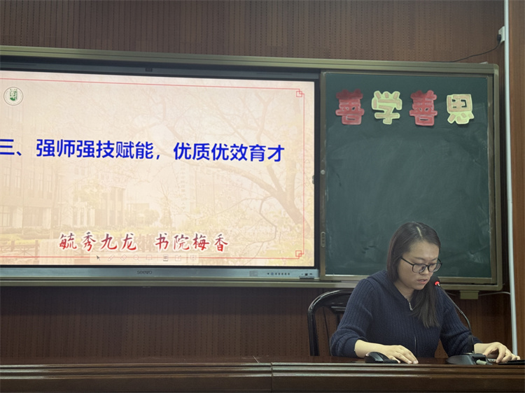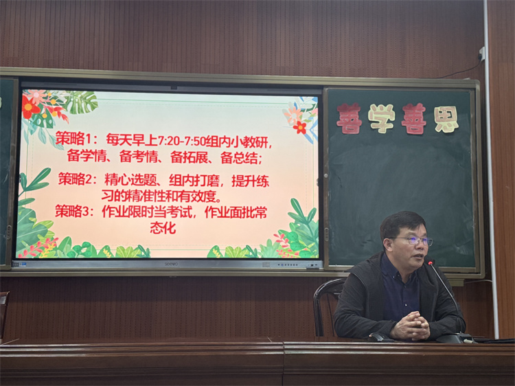 初一語(yǔ)文吳瑩老師與初二數(shù)學(xué)組組長(zhǎng)宋銀軍老師分別分享了語(yǔ)文學(xué)科與數(shù)學(xué)組的復(fù)習(xí)策略。吳瑩老師結(jié)合語(yǔ)文課程特點(diǎn),分享了閱讀與寫(xiě)作的復(fù)習(xí)要點(diǎn)及創(chuàng)新方法;宋銀軍老師則從數(shù)學(xué)學(xué)科邏輯思維培養(yǎng)出發(fā),介紹了針對(duì)性的復(fù)習(xí)方案,為各學(xué)科教學(xué)提供了寶貴經(jīng)驗(yàn)借鑒,助力教師提升教學(xué)技能,實(shí)現(xiàn)優(yōu)質(zhì)優(yōu)效育才目標(biāo)。
