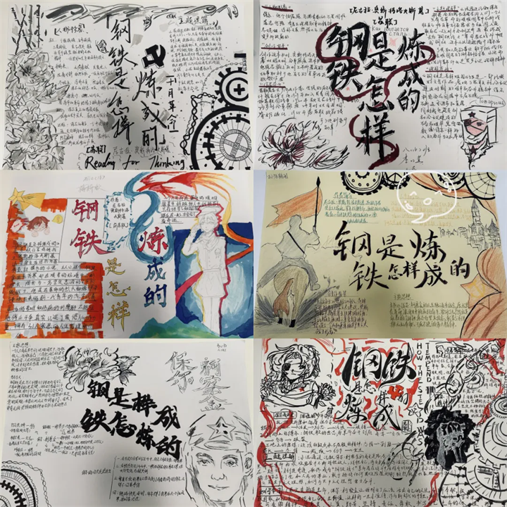 比賽中,同學(xué)們執(zhí)筆抒懷,用絢麗色彩勾勒保爾在戰(zhàn)火與困境中堅(jiān)毅的身影,工整摘抄“人的一生應(yīng)當(dāng)這樣度過……”等經(jīng)典語句,將鋼鐵般的意志融入每一處設(shè)計(jì)構(gòu)思。一幅幅作品不僅版面精美,更通過創(chuàng)意排版與細(xì)膩筆觸,展現(xiàn)出對(duì)經(jīng)典的獨(dú)特理解與深刻感悟。
