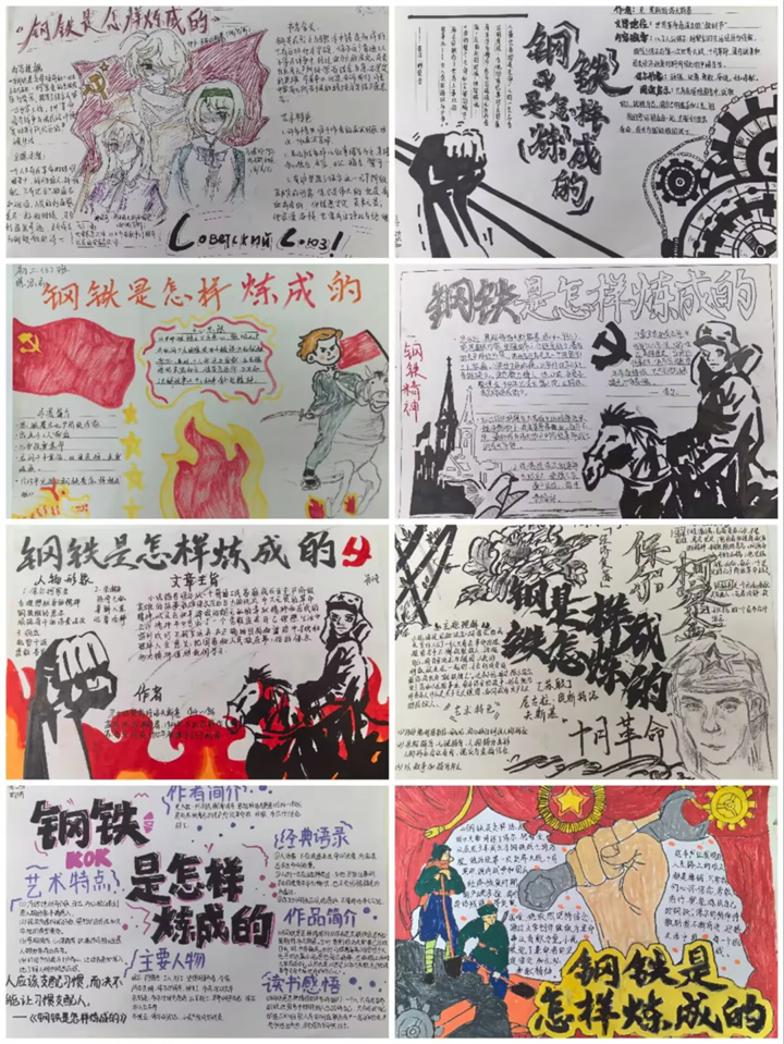 為感悟名著魅力,樹人學(xué)校九龍湖校區(qū)初二年級(jí)舉辦《鋼鐵是怎樣煉成的》手抄報(bào)比賽?;顒?dòng)旨在引導(dǎo)學(xué)生深入閱讀經(jīng)典,從主人公保爾·柯察金的奮斗歷程中汲取精神力量。