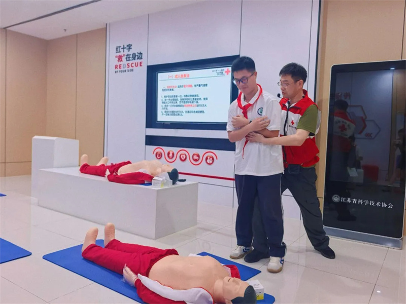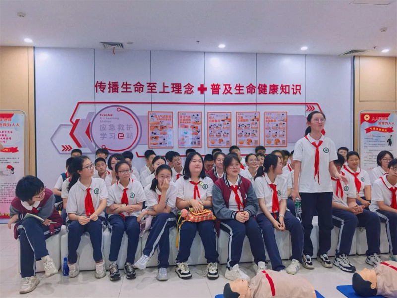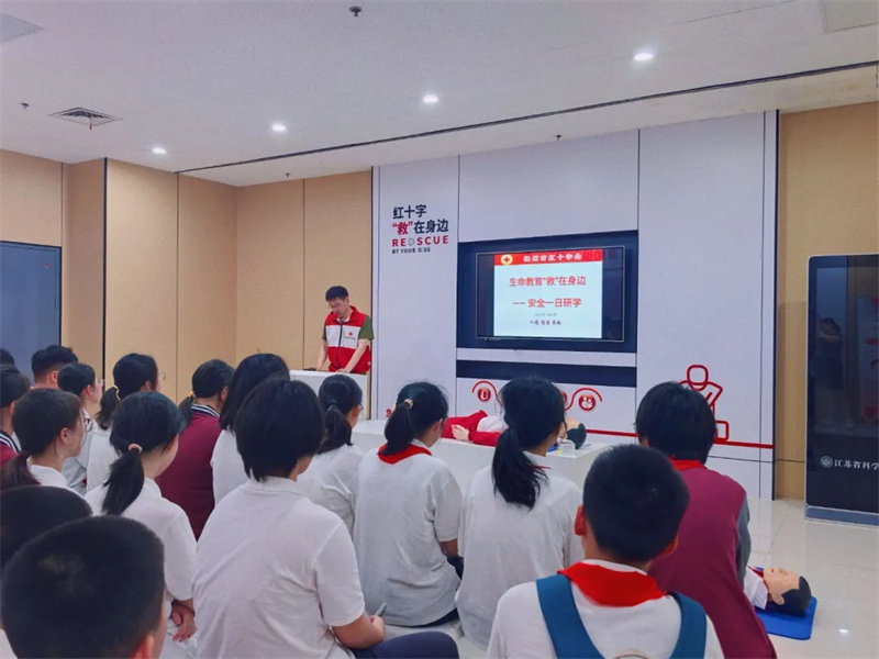 在成長的旅程中,生命安全教育如同基石,為青少年的健康成長保駕護(hù)航。7月2日下午,樹人學(xué)校九龍湖校區(qū)初二(6)班全體同學(xué)來到位于揚州科技館的揚州市紅十字會生命教育基地,參與了一場別開生面的生命健康教育活動。此次活動旨在增強同學(xué)們的生命安全意識,傳授實用的急救技能,傳遞“人道、博愛、奉獻(xiàn)” 的紅十字精神。