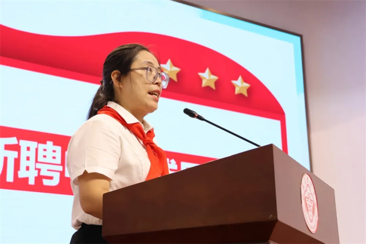學(xué)工處主任李君紅宣讀2025級(jí)中隊(duì)輔導(dǎo)員聘任名單,校區(qū)校長(zhǎng)趙平、學(xué)工處主任張蕊為輔導(dǎo)員頒發(fā)聘書(shū)。