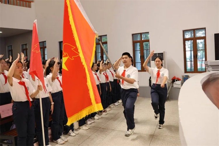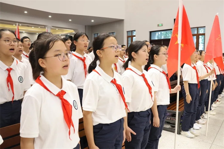 “從樹(shù)人堂出發(fā),熱于求知,正直向上……” 初一年級(jí)主任沈波帶領(lǐng)全體隊(duì)員莊嚴(yán)宣誓,鏗鏘誓言彰顯少年擔(dān)當(dāng);“準(zhǔn)備著,為共產(chǎn)主義事業(yè)而奮斗!—— 時(shí)刻準(zhǔn)備著” 的呼號(hào)聲,更是點(diǎn)燃了隊(duì)員們的理想火種。
