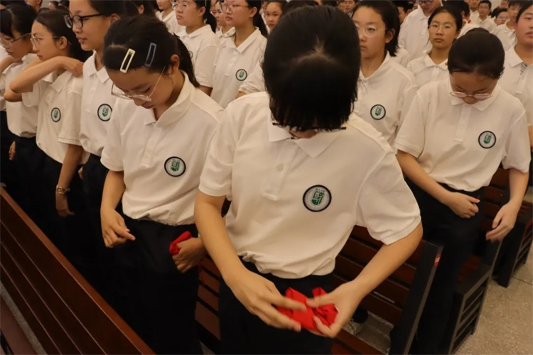 最后,領(lǐng)導(dǎo)嘉賓與隊(duì)員們共同退旗、高唱校歌。在悠揚(yáng)的校歌聲中,樹(shù)人學(xué)校九龍湖校區(qū) 2025 級(jí)建隊(duì)暨初一升級(jí)儀式圓滿落幕。此次儀式不僅是一次成長(zhǎng)的見(jiàn)證,更讓少年們?cè)诩t色氛圍中堅(jiān)定信念,從樹(shù)人堂出發(fā),向著中國(guó)式現(xiàn)代化新征程揚(yáng)帆遠(yuǎn)航。