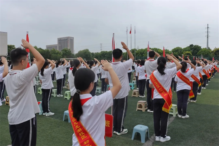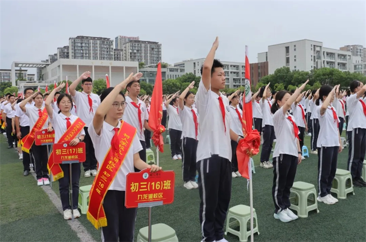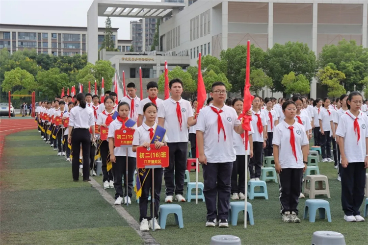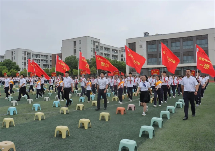 典禮在激昂的迎新儀式中拉開(kāi)帷幕。初二、初三學(xué)子以整齊隊(duì)列和熱烈掌聲歡迎初一新生入場(chǎng)。班旗獵獵,步伐鏗鏘,新鮮血液的融入為九龍湖校園增添蓬勃朝氣,更象征著樹(shù)人精神代代相傳、永續(xù)不息。