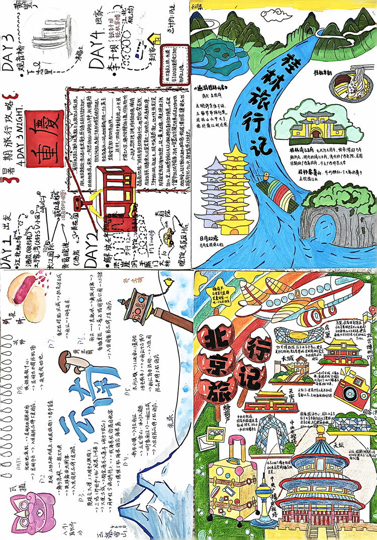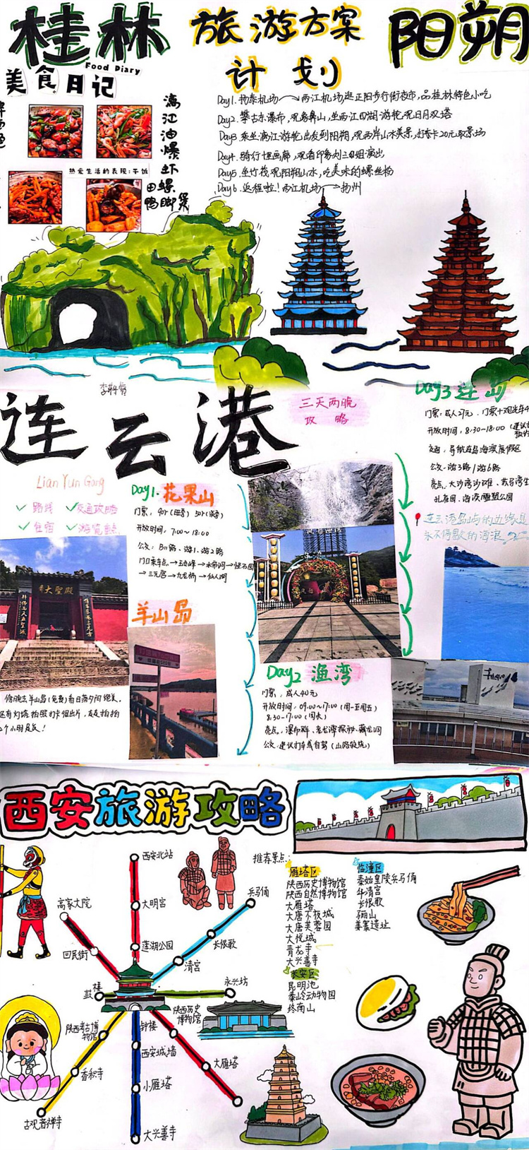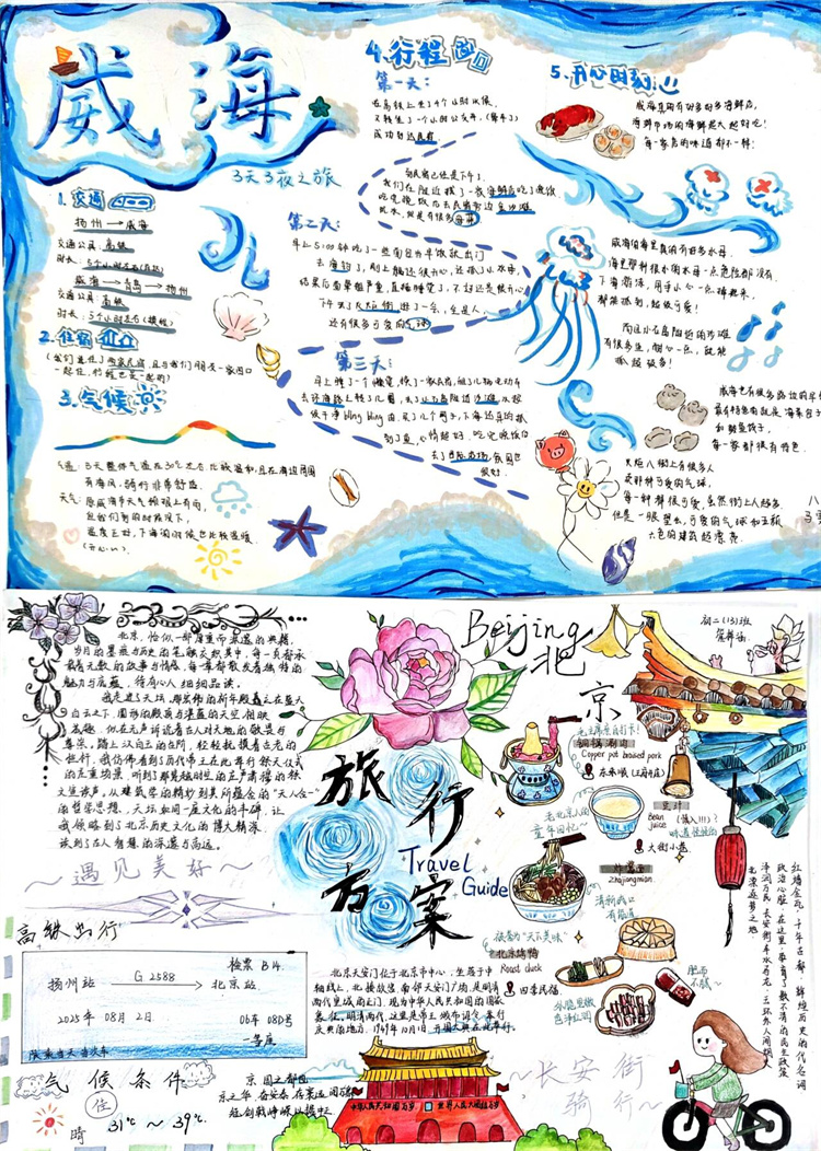 在“暑假旅行方案設計”環(huán)節(jié),同學們融合語文、歷史、地理等多學科知識,呈現出一份份充滿創(chuàng)意的旅行計劃。有的同學設計“重走唐詩之路”文化之旅,沿詩人足跡繪制文學地圖;有的打造“舌尖上的故鄉(xiāng)”美食探索路線,以文字和影像記錄地方民俗。大家紛紛表示,這次設計讓自己深刻體會到——旅行不僅是欣賞風景,更是一場文化的深度體驗。