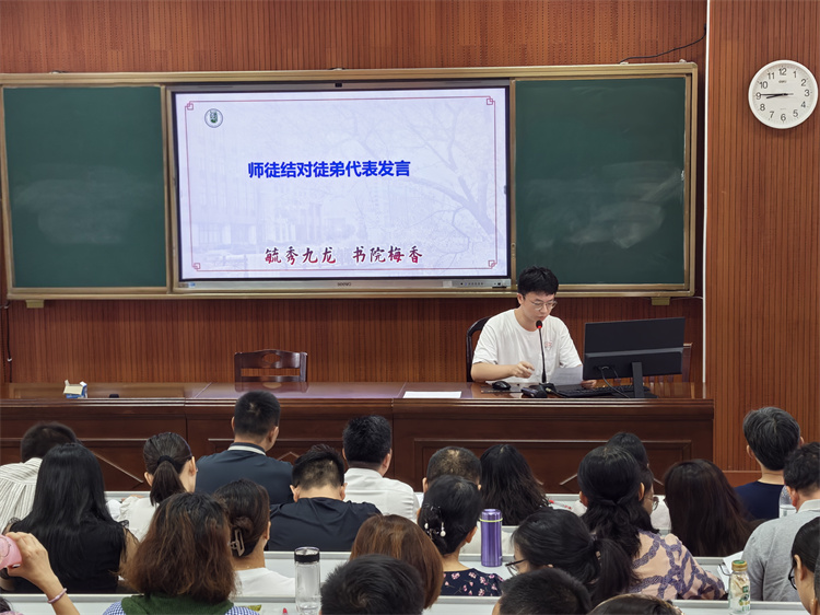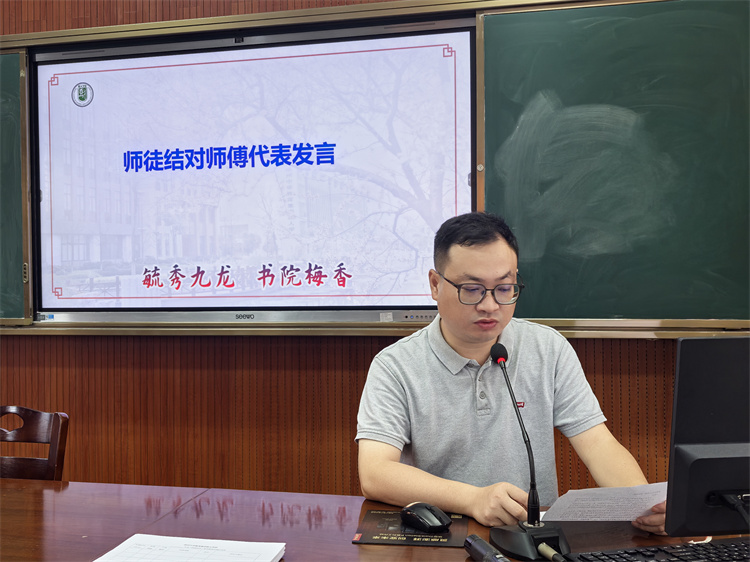 第二項(xiàng)議程:九龍湖校區(qū)教務(wù)處副主任趙焱圍繞“師徒攜手傳薪火,雙崗賦能育新人”展開分享,詳細(xì)介紹了本學(xué)期師徒結(jié)對(duì)的實(shí)施方案。該計(jì)劃通過(guò)“傳、幫、帶”機(jī)制,為新教師發(fā)展提供有力支持。徒弟代表余恒博發(fā)言,表達(dá)了對(duì)學(xué)校搭建成長(zhǎng)平臺(tái)的感謝,承諾將虛心求教、勤學(xué)篤行。隨后,師傅代表陸云老師作表態(tài)發(fā)言,表示將毫無(wú)保留地分享教學(xué)經(jīng)驗(yàn)和育人智慧,為學(xué)校師資隊(duì)伍建設(shè)貢獻(xiàn)力量。