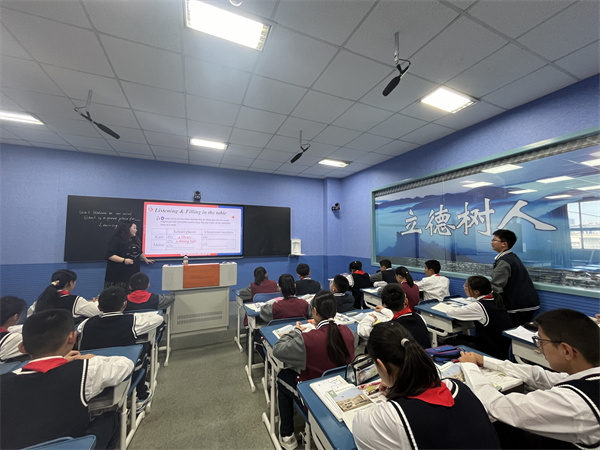 首先,初一英語(yǔ)組沈燦老師開(kāi)設(shè)了一節(jié)七年級(jí)上冊(cè)第三單元Welcome的展示課。沈老師關(guān)聯(lián)學(xué)生已知、導(dǎo)入新知,引導(dǎo)學(xué)生積極思考單元主題句的意義。課堂中學(xué)生聽(tīng)音頻、看圖片、讀對(duì)話,積極進(jìn)行語(yǔ)言表達(dá)。沈老師通過(guò)設(shè)置層層遞進(jìn)的問(wèn)題,從單元整體角度出發(fā),引導(dǎo)學(xué)生整體考慮學(xué)習(xí)內(nèi)容并深度思考思與評(píng)價(jià);通過(guò)討論和相互問(wèn)答,引導(dǎo)學(xué)生結(jié)合實(shí)際校園生活,談?wù)撟约旱男聦W(xué)校,實(shí)現(xiàn)由課內(nèi)到課外的知識(shí)遷移;通過(guò)創(chuàng)設(shè)真實(shí)情境,引導(dǎo)學(xué)生增進(jìn)對(duì)校園的了解,幫助學(xué)生主動(dòng)融入新的校園生活,樹(shù)立積極的校園生活態(tài)度。