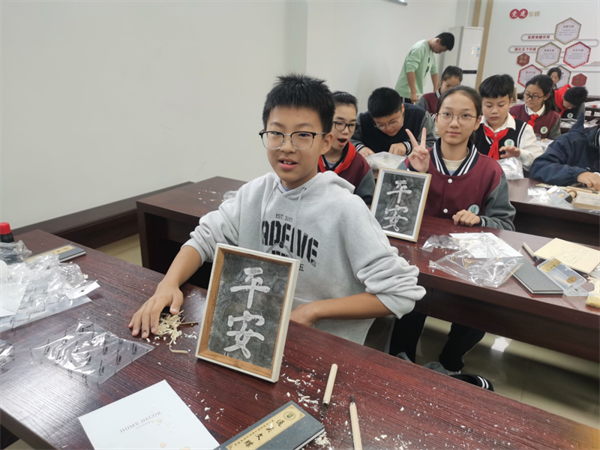 燒箔畫課上,學(xué)生們在老師的指導(dǎo)下,使用金屬箔片創(chuàng)作出一件件精美的藝術(shù)品,不僅提升了審美情趣,還鍛煉了耐心和細致入微的觀察能力;雕版印刷神奇有趣,通過親手制作雕版并進行印刷,學(xué)生們深入了解了中國古代四大發(fā)明之一的印刷術(shù),感受到了中華文明的博大精深?;粽n上,學(xué)生們利用各種材料制作了造型各異的花燈,對中華傳統(tǒng)文化進行了深入了解。