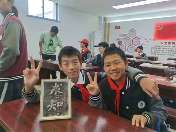 魯班課堂里,匠師模擬古代工匠的工作場景,讓學(xué)生們體驗?zāi)竟ぜ妓嚨臉啡?,培養(yǎng)了他們的動手能力和空間想象能力;剪紙這項傳統(tǒng)手工藝深受學(xué)生喜愛,學(xué)生們在剪刀與紙張之間舞動,創(chuàng)造出一幅幅充滿創(chuàng)意的圖案,表達了對美好生活的向往;拓印體驗讓孩子們領(lǐng)略了漢字之美;桌游環(huán)節(jié)通過寓教于樂的方式,加深了學(xué)生們對中華優(yōu)秀傳統(tǒng)文化的認識。