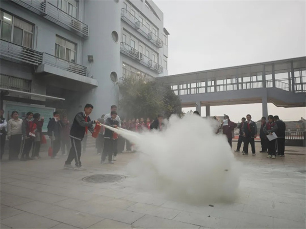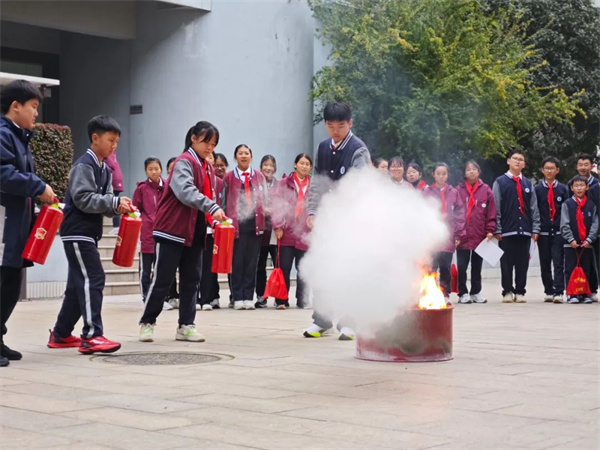 活動(dòng)進(jìn)入了高潮部分——滅火實(shí)戰(zhàn)教學(xué)。王老師現(xiàn)場(chǎng)演示了滅火器的使用方法,并邀請(qǐng)同學(xué)們親自體驗(yàn)。在老師的指導(dǎo)下,同學(xué)們紛紛拿起滅火器,勇敢地沖向模擬火源。他們按照“提、拔、瞄、壓”的步驟,熟練并安全地將火源撲滅。在火源被撲滅所產(chǎn)生的白煙中,他們的臉上洋溢著自豪和喜悅的笑容,仿佛自己就是真正的消防員,正在為消防安全而英勇奮斗。