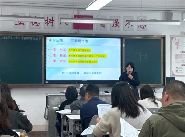 任課教師也走進(jìn)班級(jí),詳細(xì)地向家長(zhǎng)們介紹了班級(jí)學(xué)生的各科成績(jī)狀況,通過成績(jī)分析、課堂表現(xiàn)反饋以及作業(yè)完成情況等多維度信息,家長(zhǎng)們清晰地了解到孩子在學(xué)校的學(xué)習(xí)動(dòng)態(tài)。老師們還針對(duì)不同學(xué)科的特點(diǎn),為家長(zhǎng)提供了指導(dǎo)孩子學(xué)習(xí)的方法。家長(zhǎng)們認(rèn)真傾聽,專注的模樣,彰顯出對(duì)孩子教育的重視與對(duì)教師工作的認(rèn)可。