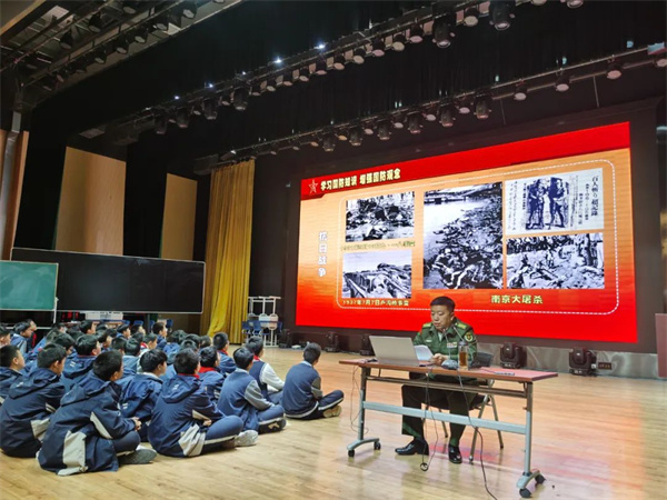 2024年11月20日,樹人學(xué)校南門街校區(qū)自清講堂在藝術(shù)報(bào)告廳迎來第5講“國防教育進(jìn)校園,點(diǎn)亮青春強(qiáng)國夢”,此次講座特別邀請揚(yáng)州軍分區(qū)戰(zhàn)備建設(shè)處上校處長葛守玉先生來校,為同學(xué)們帶來了一場別開生面的國防知識講座,初一年級的全體學(xué)生積極參與,活動(dòng)現(xiàn)場氣氛熱烈。