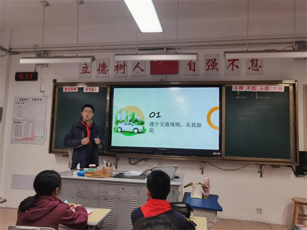在講解過程中,老師還特別提到了我校同學在上學放學出行中常見的違法行為,如坐車不系安全帶、坐電瓶車不規(guī)范佩戴安全頭盔、步行過馬路闖紅燈等,并指出了這些行為的嚴重危害。同時,老師還引導(dǎo)學生們思考如何在日常生活中自覺遵守交通規(guī)則,如何保護自己和他人的生命安全。