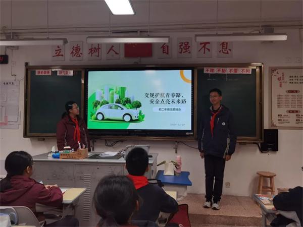 為進一步提升學生的交通安全意識,11月29日,我樹人學校南門街校區(qū)初二年級各班開展了以“交規(guī)護航青春路,安全點亮未來路”為主題的班會活動。此次班會旨在通過生動的案例和講解,讓學生們深刻認識到遵守交通規(guī)則的重要性,并學會在日常生活中如何保護自己和他人的生命安全。