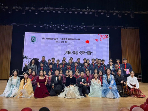 2024年12月3日揚(yáng)州中學(xué)教育集團(tuán)樹人學(xué)校南門街校區(qū)第116場“雅韻清音”文藝活動在藝術(shù)報(bào)告廳舉行。本次活動由初二(3)班精心組織籌劃。翰墨書香,清音雅韻,在聚焦燈下,讓我們一起走進(jìn)屬于初二(3)的文化與藝術(shù)的盛宴。四位主持人閃亮登場,他們是嚴(yán)希、王煊赫、凌偉軒、許宸軒。在熱情洋溢的開場白和掌聲中,文藝演出正式開始。