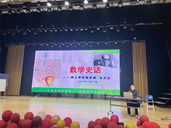 2024年12月11日,我校南門(mén)街校區(qū)初一年級(jí)舉辦了一場(chǎng)別開(kāi)生面的數(shù)學(xué)文化節(jié)講座,主題為“數(shù)學(xué)史話(huà)”。此次講座由樹(shù)人學(xué)校南門(mén)街校區(qū)初一數(shù)學(xué)組王久江老師主講,面向初一年級(jí)同學(xué)。講座通過(guò)生動(dòng)有趣的實(shí)例和故事,帶領(lǐng)同學(xué)們穿越時(shí)空,探索數(shù)學(xué)的歷史與發(fā)展。