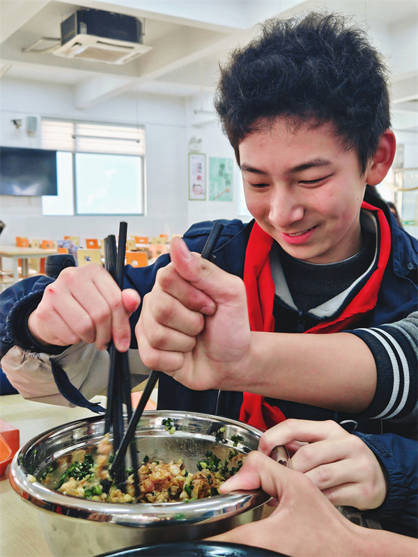 在包餃子的實踐過程中,學生們不僅掌握了制作餃子的技巧,還通過與老師、廚師的交流分享,了解了不同地域的餃子文化和特色做法。這種跨文化的交流,不僅拓寬了大家的視野,也增強了校園文化的多樣性和包容性。經(jīng)過一段時間的共同努力,一盤盤形態(tài)各異、香氣撲鼻的餃子被端上了餐桌。學生們在品嘗自己勞動成果的同時,也感受到了團隊合作帶來的成就感和喜悅。此次全班一起包餃子不僅讓學生體驗到了動手制作的成就感,還讓彼此之間加深了解,增進友誼。