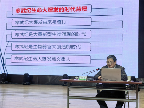 講座過(guò)程中,他用眼神溫柔地注視著學(xué)生,不斷耐心地給我們區(qū)分各種概念,還向我們傳遞著科學(xué)精神,告誡我們當(dāng)代學(xué)生要努力才能得到成果。嚴(yán)肅的生命話題之余,他也會(huì)講一些有趣的小故事。此外,在講到中國(guó)對(duì)寒武紀(jì)大爆發(fā)提供的證據(jù)最豐富時(shí),他充滿自豪感。如此種種,將學(xué)生們的思想引入高地。使同學(xué)們的眼中無(wú)不迸發(fā)著一種智慧探索之火。