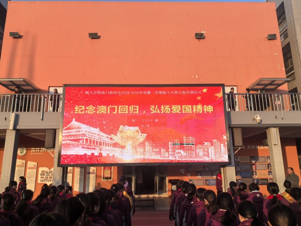 12月20日是澳門回歸25周年的日子,為紀念澳門回歸,國家設(shè)立每年12月20日為澳門回歸日。為響應(yīng)國家號召,培養(yǎng)學(xué)生們的愛國精神,我校南門街校區(qū)于12月16日上午舉行“紀念澳門回歸,弘揚愛國精神”第十六周主題升旗儀式。