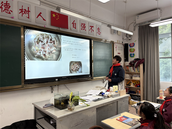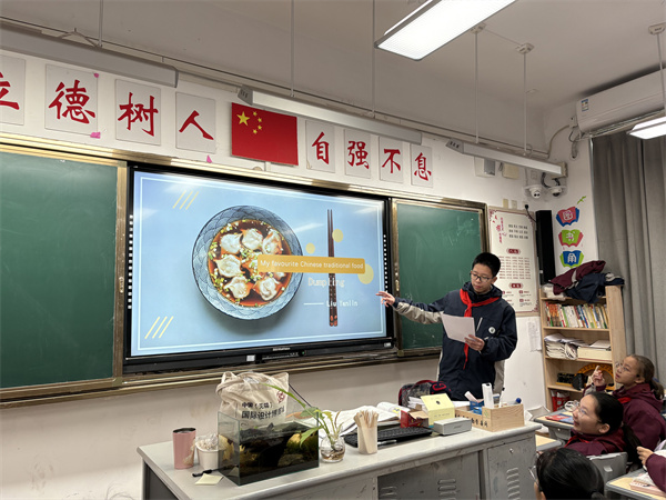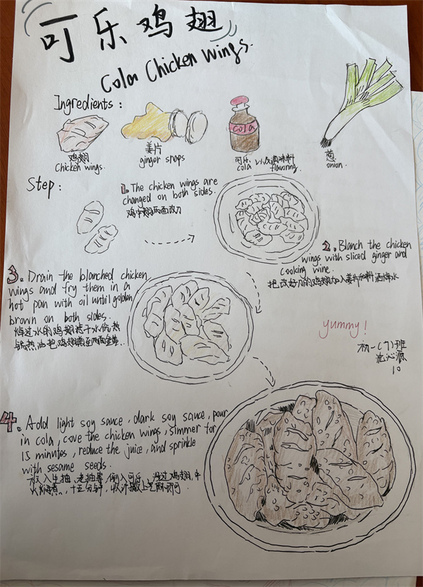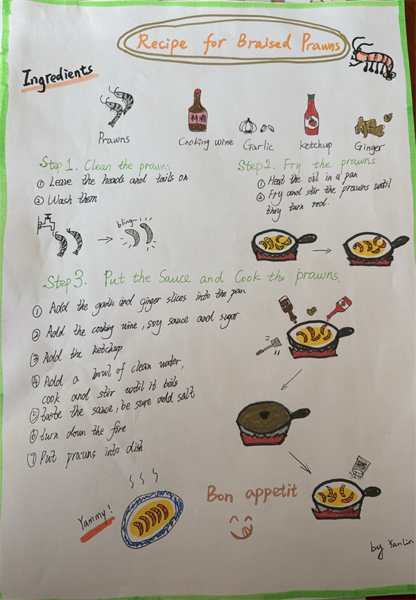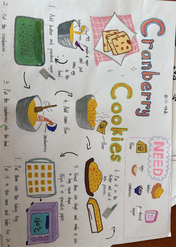 The theme of this practice is "Delicious Food." Students need to introduce a kind of food they are interested in. We made different kinds of food like cranberry cookies,lemon tea,fortune cookies and shared our food and the making process in class.